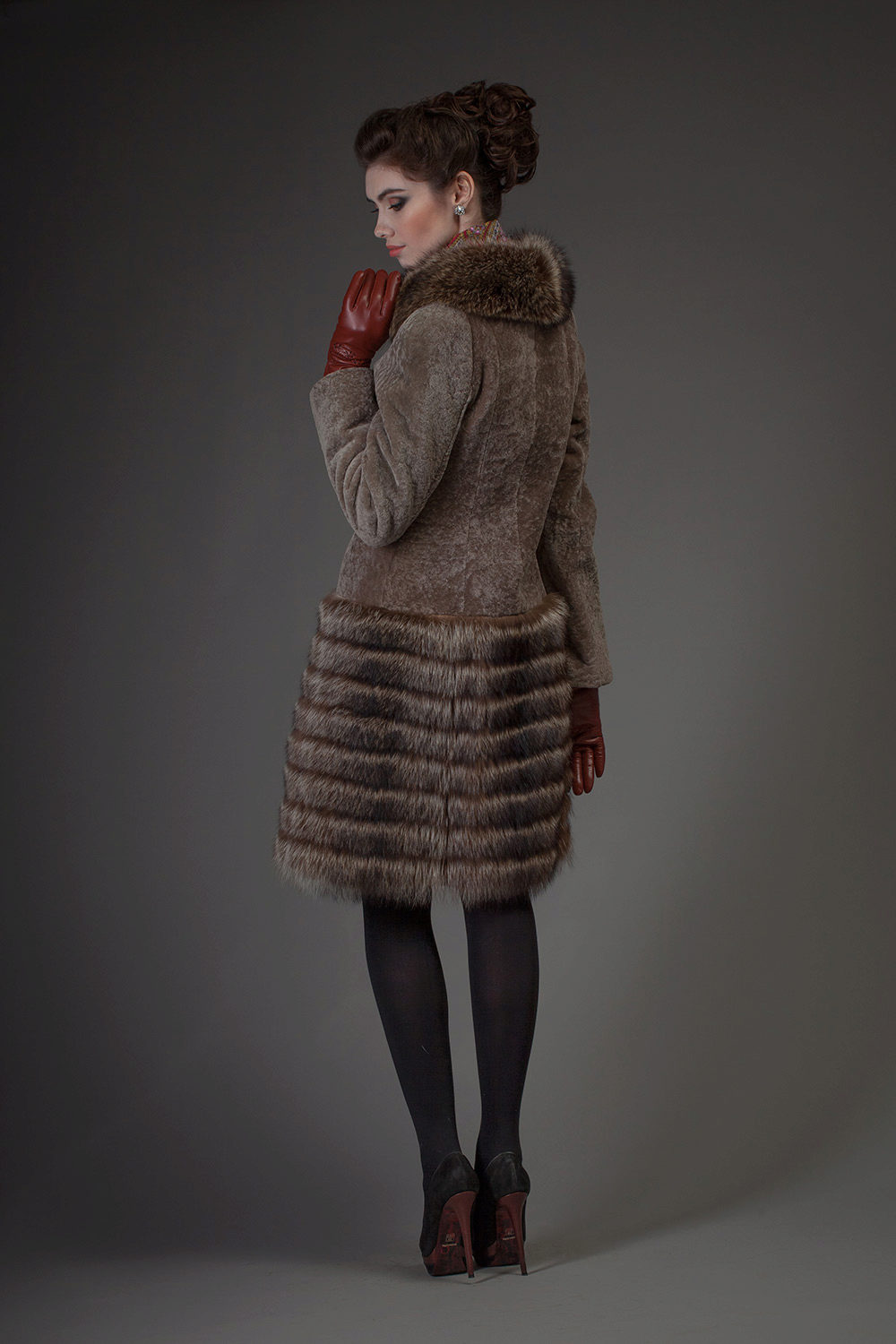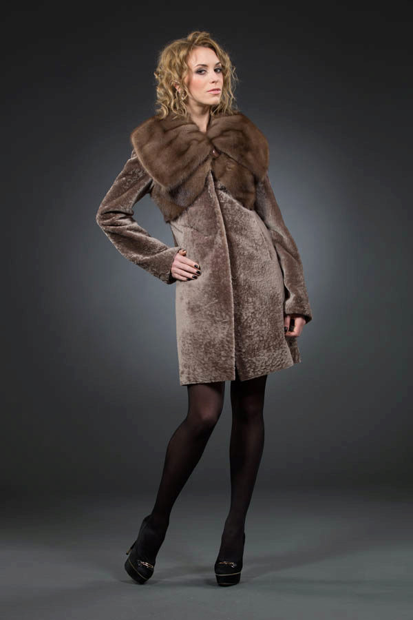 Combinations of astragana with other furs and materials have become a real hit of the last seasons. Very impressive and feminine-looking models are made from astragana, trimmed with mink, arctic fox, lynx, marten, nutria or sheepskin.
