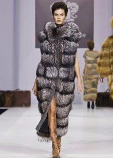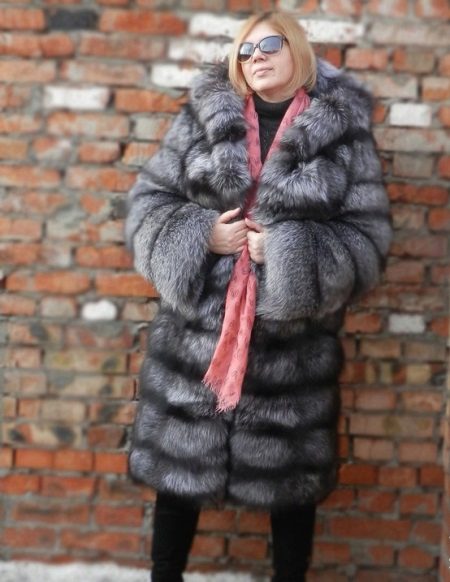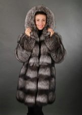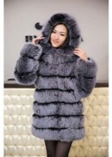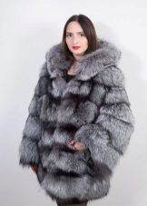 Fashionistas are advised to choose a silver fox fur coat with a hood of exactly natural color with a gradient ruler. After all, this feature of the fur is its important advantage. Designers pay attention to segmented models in which there is a cross-cut. In this case, the gradient color transition is present not only on the pile, but also on the surface.