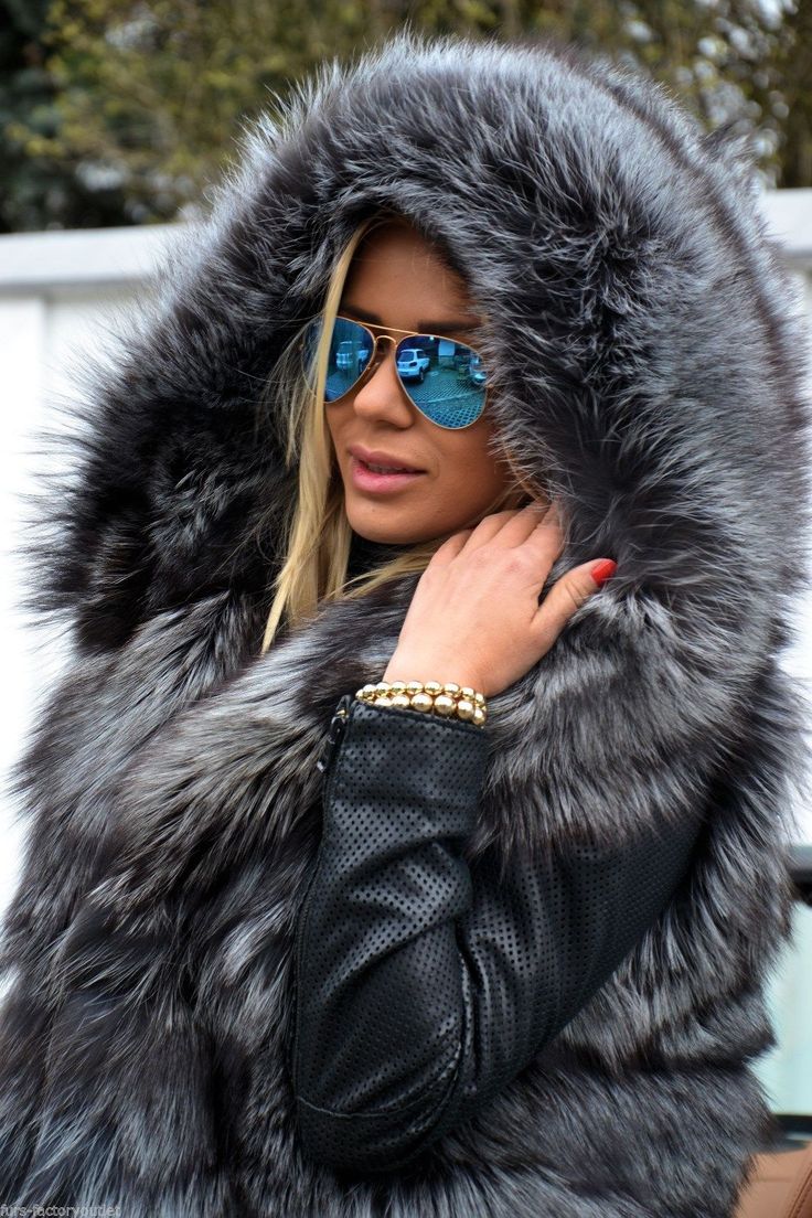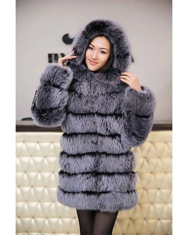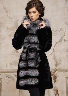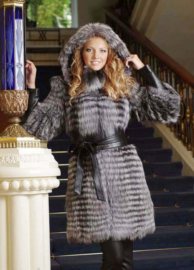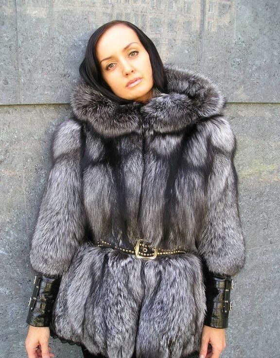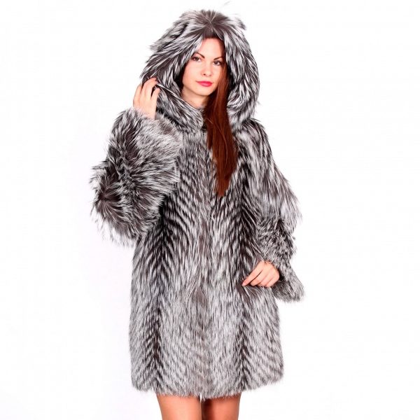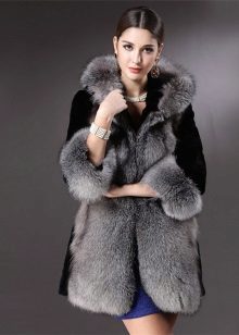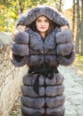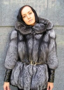 - Under those features of the figure, which were described in the previous paragraph, it is better to choose models with an average length. The relevance of the belt in silver fox coats with a hood is in doubt. It is better to choose models in which there is a combination of different shades of fur. For example, gray and black.