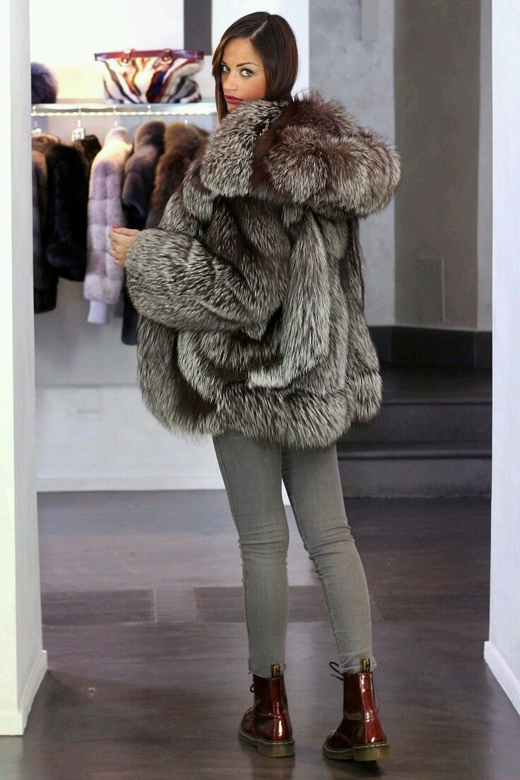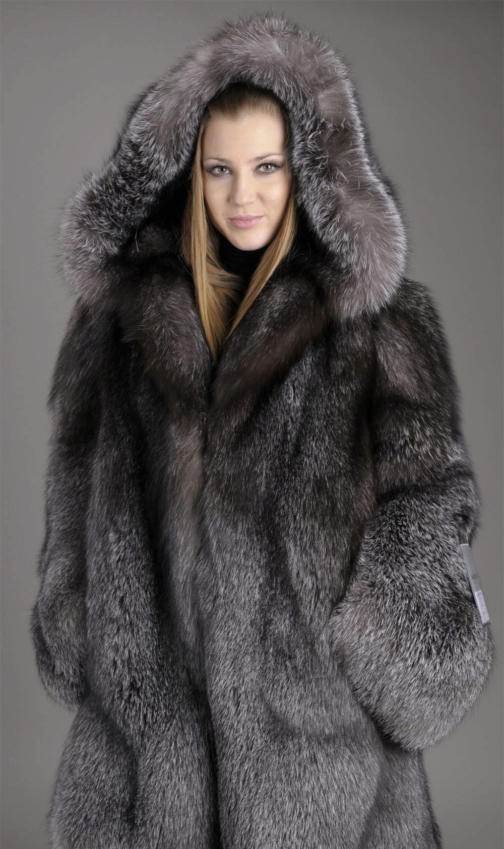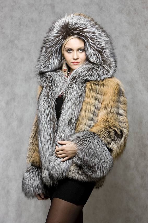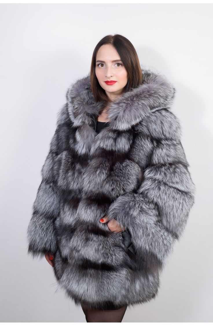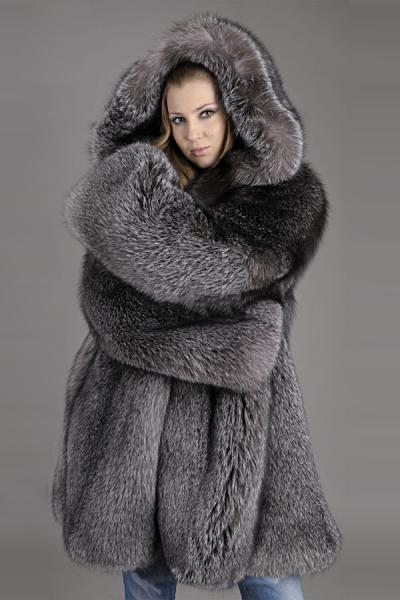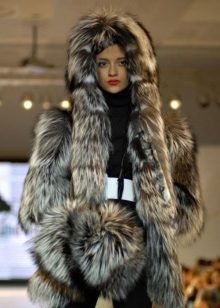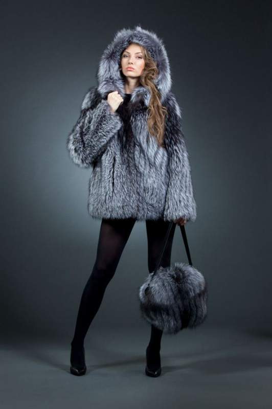 - The cropped fur coat of a silver fox with a hood is a vivid example of which model you should choose for women who travel around the city in their own car. If on the street you have to spend a large amount of time, then you definitely need to choose a longer and warmer coat. The presence of the hood will allow for the whole day to keep your hair and not freeze.