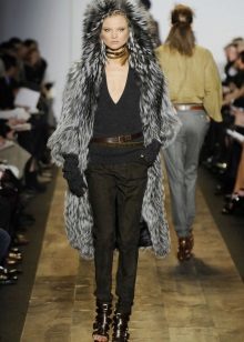 - Fur coats on the floor, although they are expensive, but they look gorgeous. Such clothes can be used on special occasions, but definitely not for everyday wear. A fur coat made from such luxurious fur as a silver fox, in which the hood is already present, does not need any additional decor. Do not clog the beauty of fur patch pockets, elaborate dressing and belt.