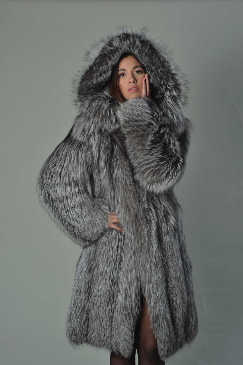 - Cross from silver fox looks especially gorgeous. Such models are now the most popular, moreover, are elegant, but at the same time devoid of pretentiousness. Similar models are also created from silver fox fur, and yes even supplied with hoods. When you see such a fur coat, you don’t even want to look at other options.