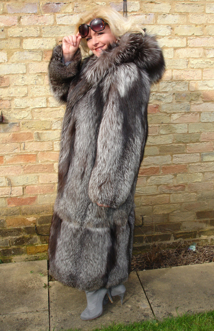 Today, our attention was attracted by fur coats of silver fox with a hood, which look great and perfectly warm despite the frosty weather.