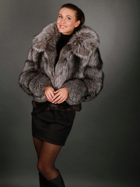 - Combined models are actively created by designers. Silver fox looks great with knitted elements that have a lace texture. The long fur of the fox of the silver fox goes well with shorter-haired fur materials that are pre-cut. In such models there is a game of volumes, which can be complemented by a combination of different colors. Mouton is most often used in such combined models. Against the background of a smooth sheared muton, silver fox fur looks even more impressive. The options here can be very much.