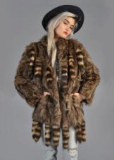 Breeders displayed in pure form white and beige raccoon color, which is easier to paint in any color. At the same time, natural shades - golden with brown, gray-brown, brown still remain popular.Raccoon fur is often tinted, emphasizing and imitating patterns on the hem of a fur coat, sleeves, collar or hood.