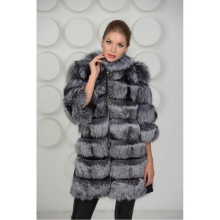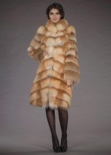 Current models are fur coats, made in the technique of "cross", when the fur is located on a fur coat with horizontal stripes of the same size. Fur stripes can be combined with leather, suede. This model looks weightless and greatly facilitates the product by weight, while remaining at the peak of fashion.