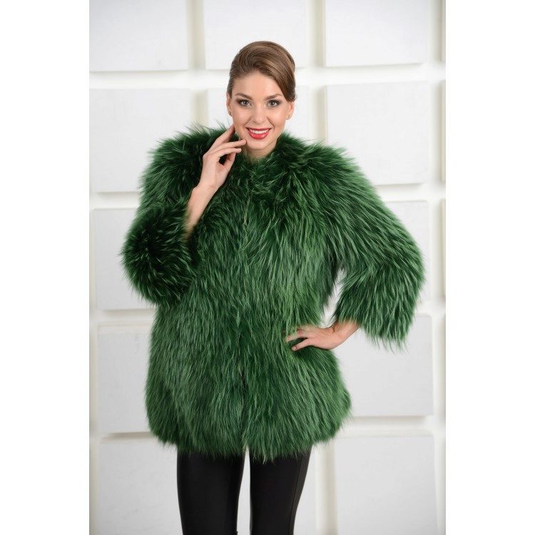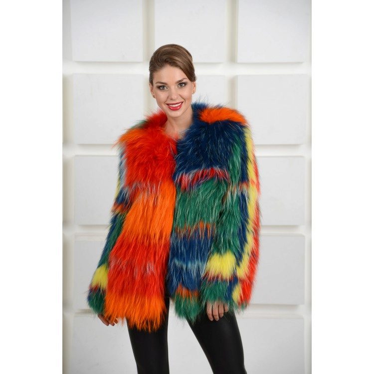 Raccoon fur is a good color, even in bright colors - green, red, purple, red, blue, white, etc. Modern coats of raccoon are less often represented in the natural color of the fur, most often the fur is colored or tinted.
