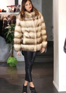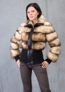 One of the fashion trends are models that combine ferret fur with leather or suede. Leather can be belts, sleeves, collars, inserts on the sides and in the waist.