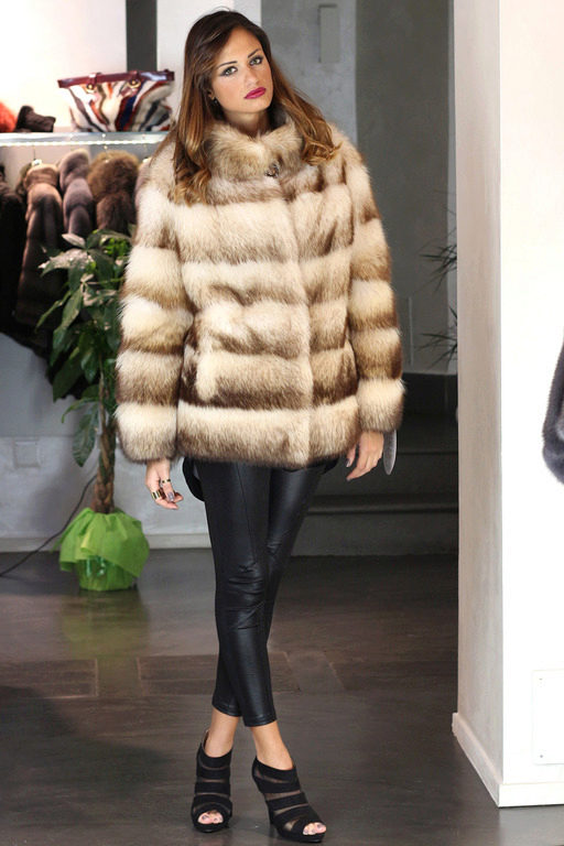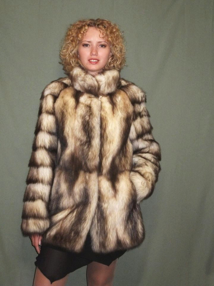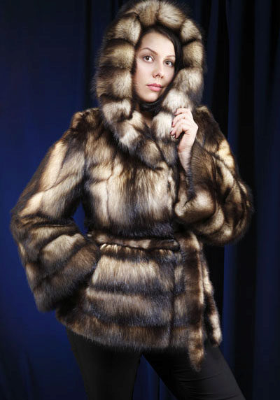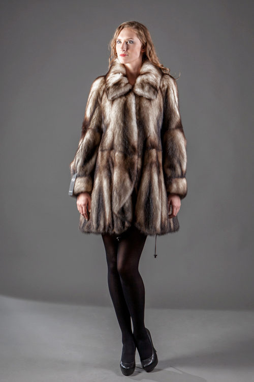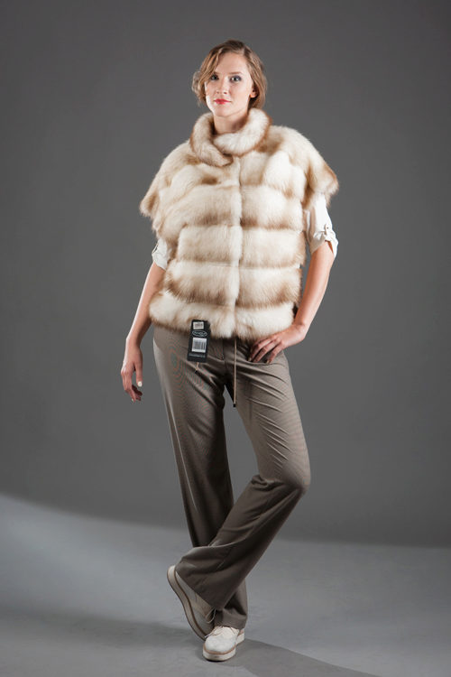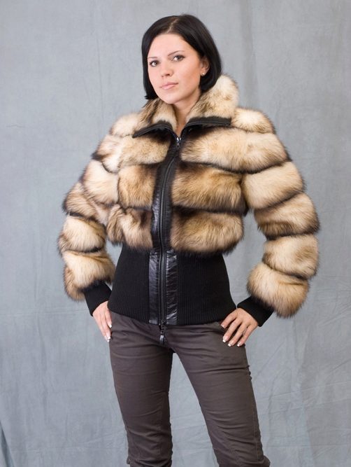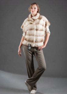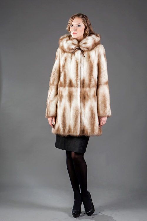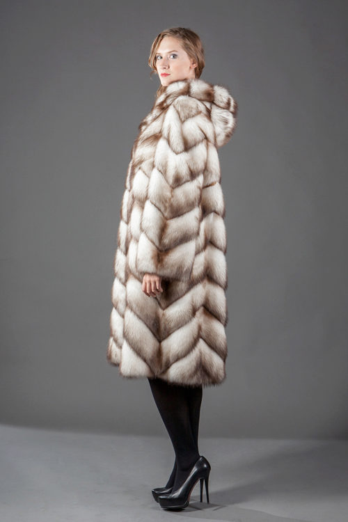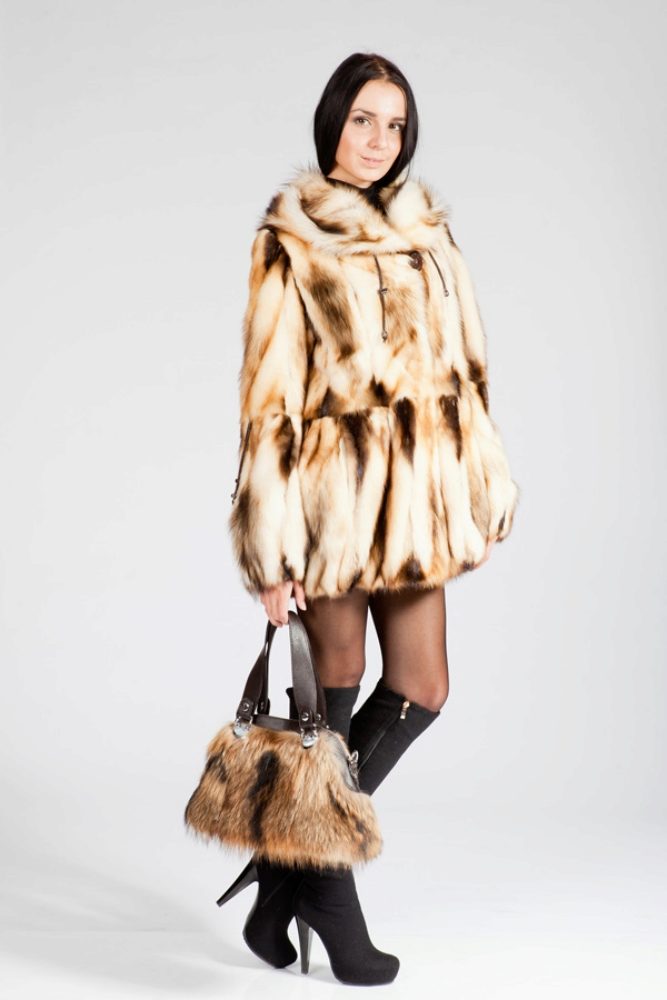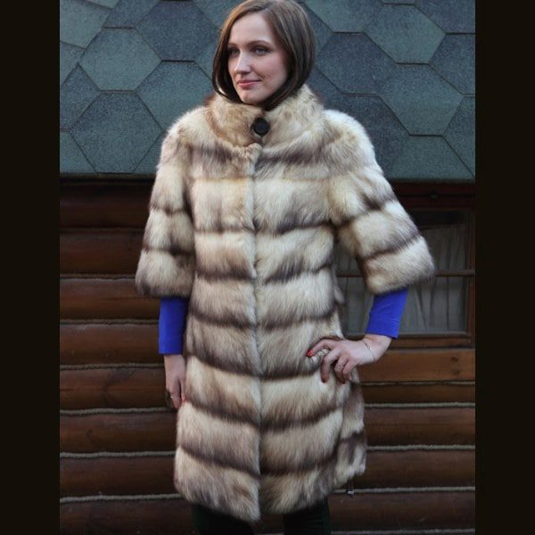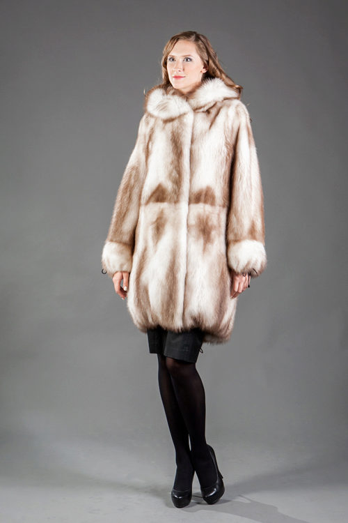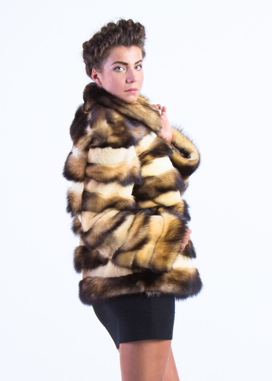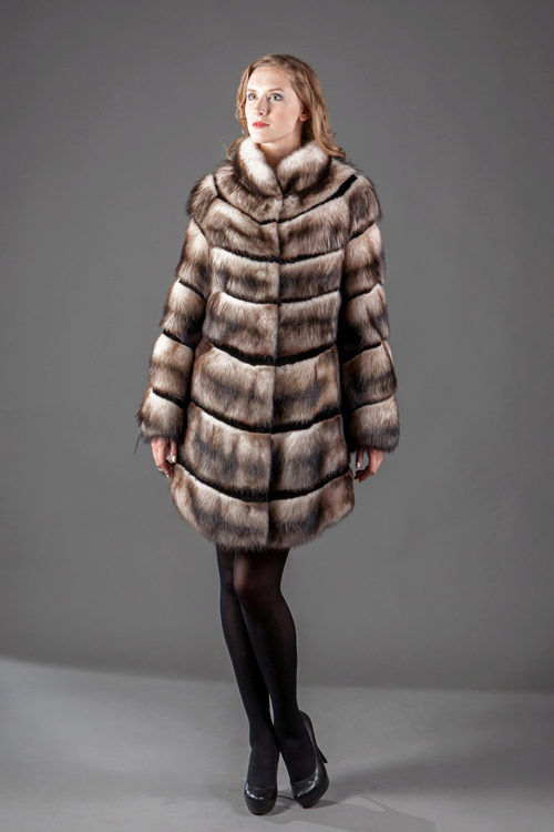 Fur coats from a cropped ferret look very original and interesting, they become light due to the fact that long guard hairs with dark ends are cut, and only in the region of the cross there are dark pieces of fur.