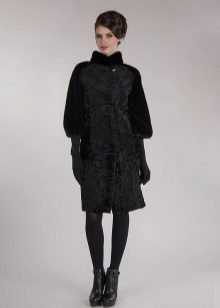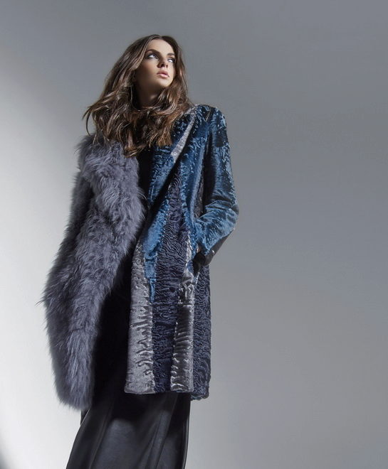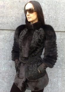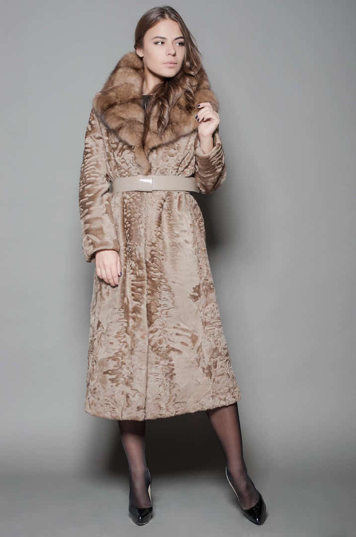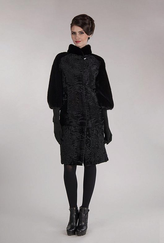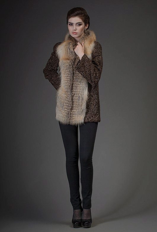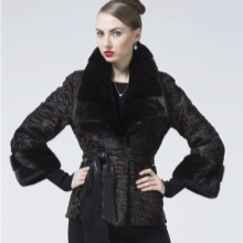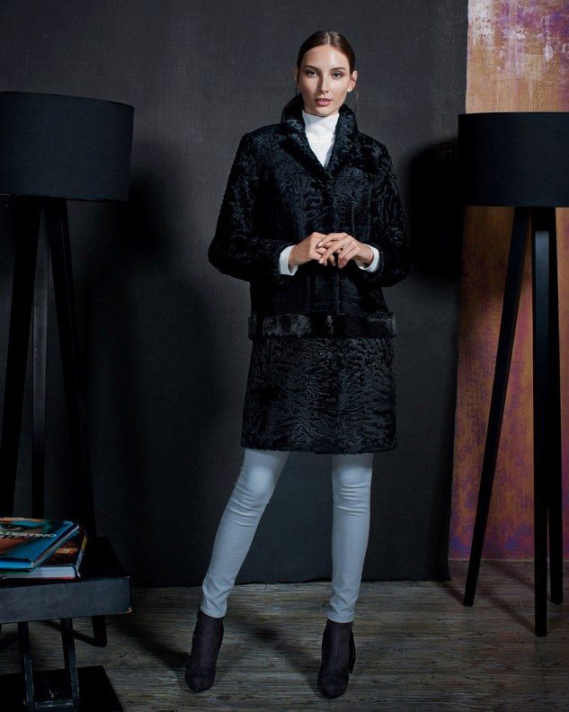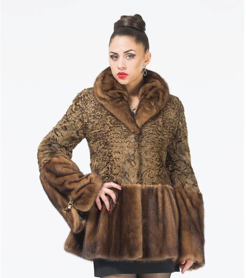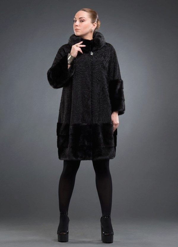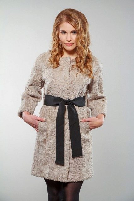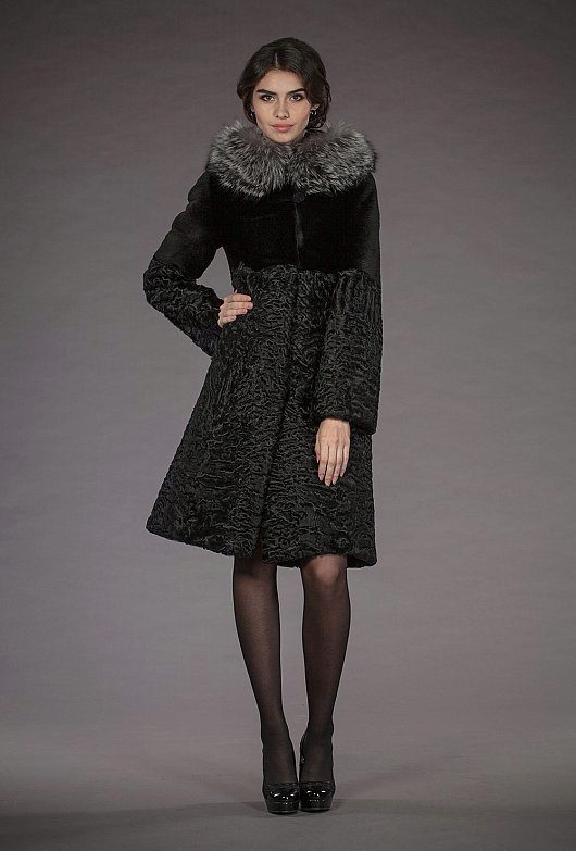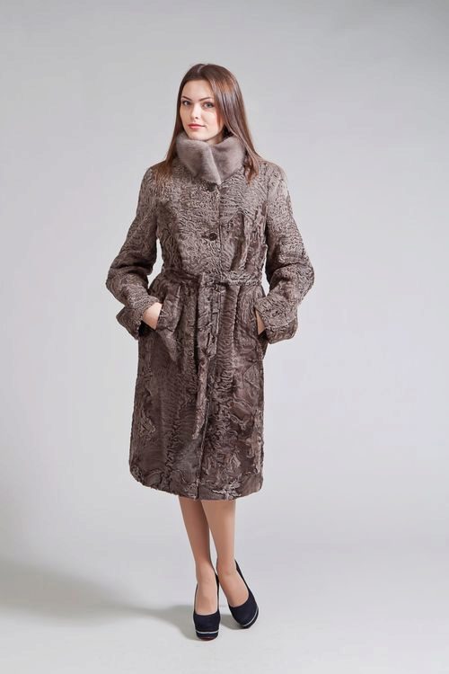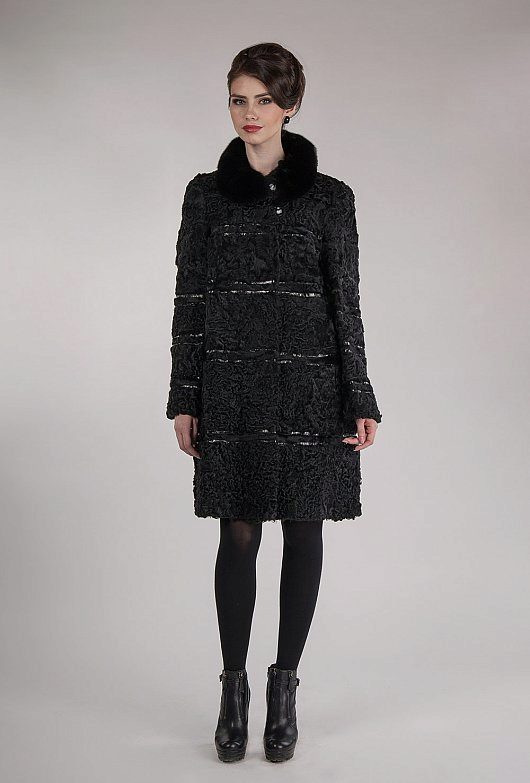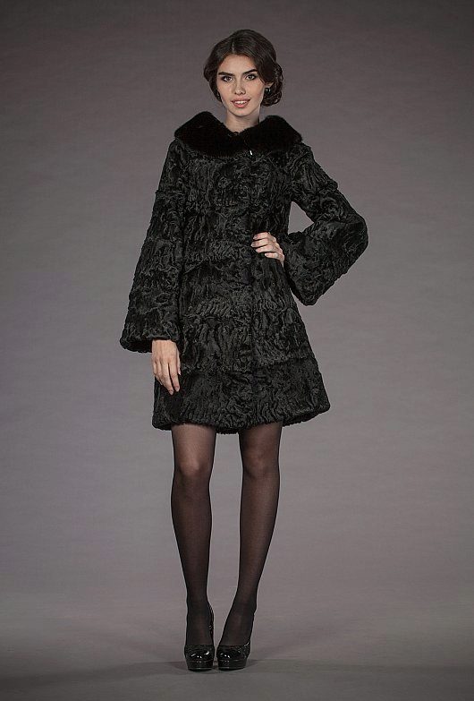 Fur coats from astrakhan fur are becoming increasingly popular in combination with inserts or astrakhan fur trim. Combination of astrakhan fur with other furs is also at the peak of relevance. Thus, the model of straight cut to the knee length of astrakhan can be combined with trimming of the collar, cuffs and sides of mink, sable, arctic fox, fox, etc.