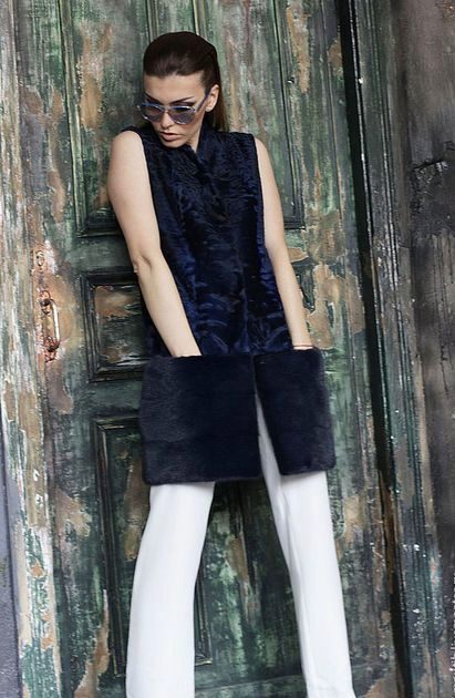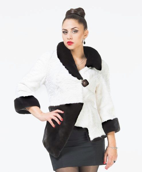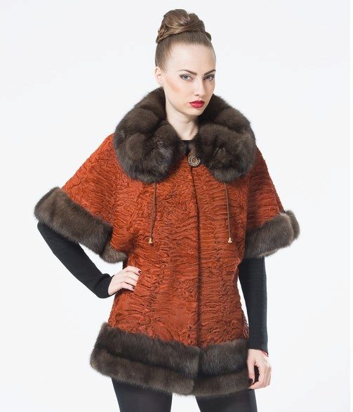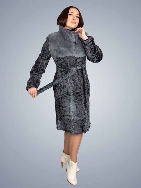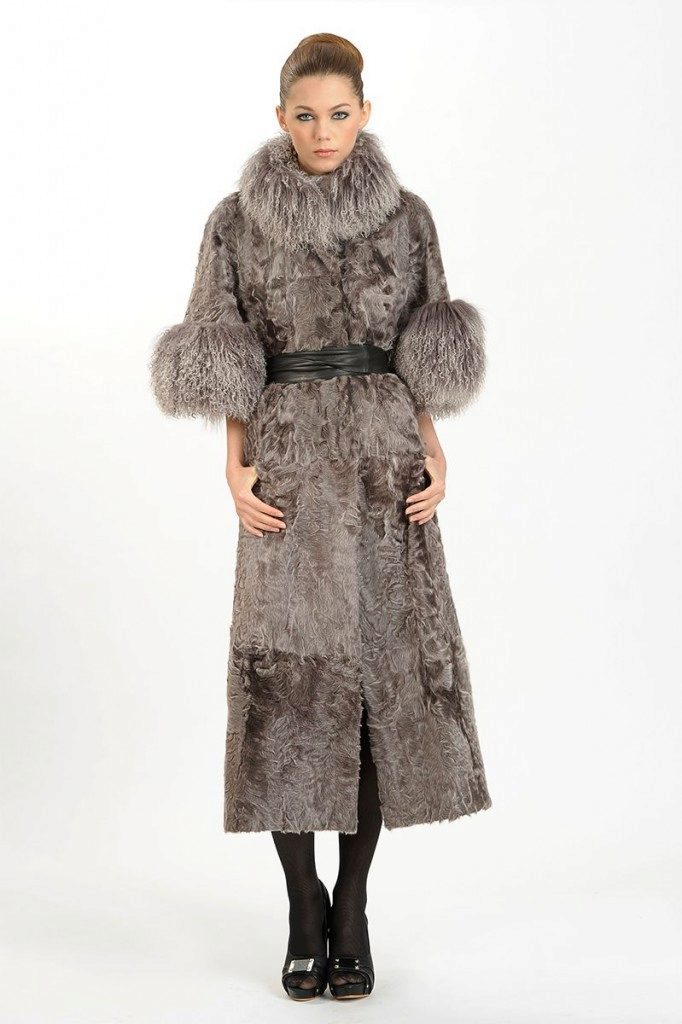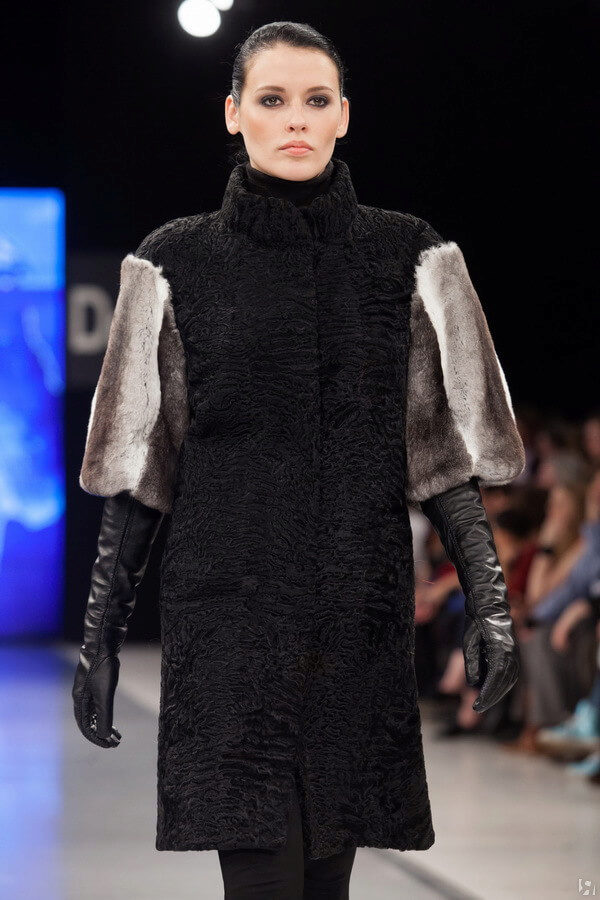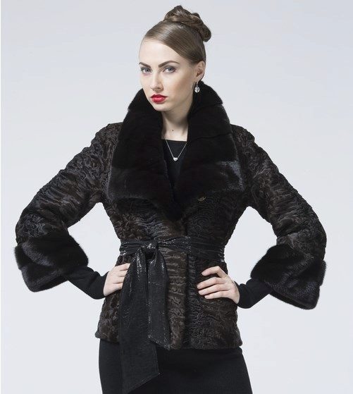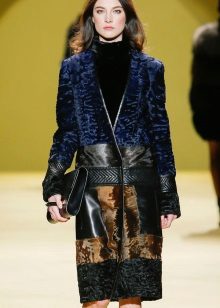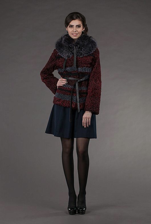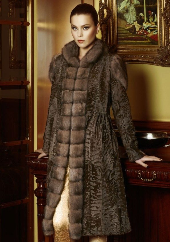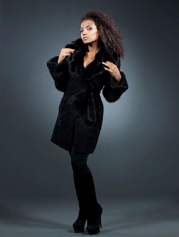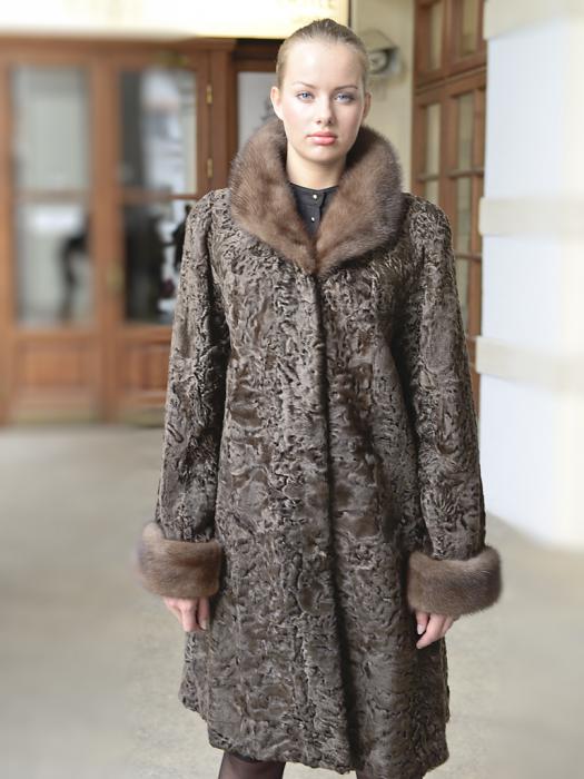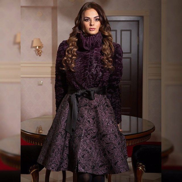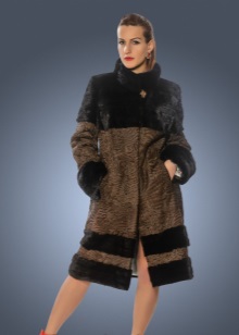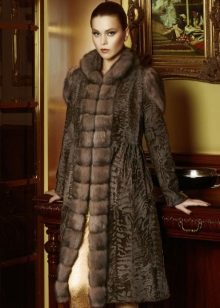 Fur coats from astrakhan fur are becoming increasingly popular in combination with inserts or astrakhan fur trim. Combination of astrakhan fur with other furs is also at the peak of relevance. Thus, the model of straight cut to the knee length of astrakhan can be combined with trimming of the collar, cuffs and sides of mink, sable, arctic fox, fox, etc.