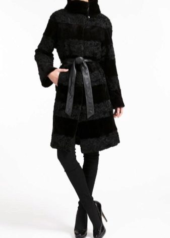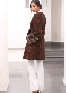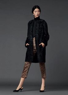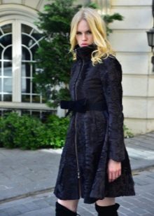 A fur coat of astrakhan fur is chosen and worn with regard to the rest of the wardrobe and it is a universal outerwear. All the classic stuff will do, as well as jeans, tight tights, dresses and skirts. The main desire of other clothes is to emphasize the elegance of outerwear, in this case astrakhan fur coats.