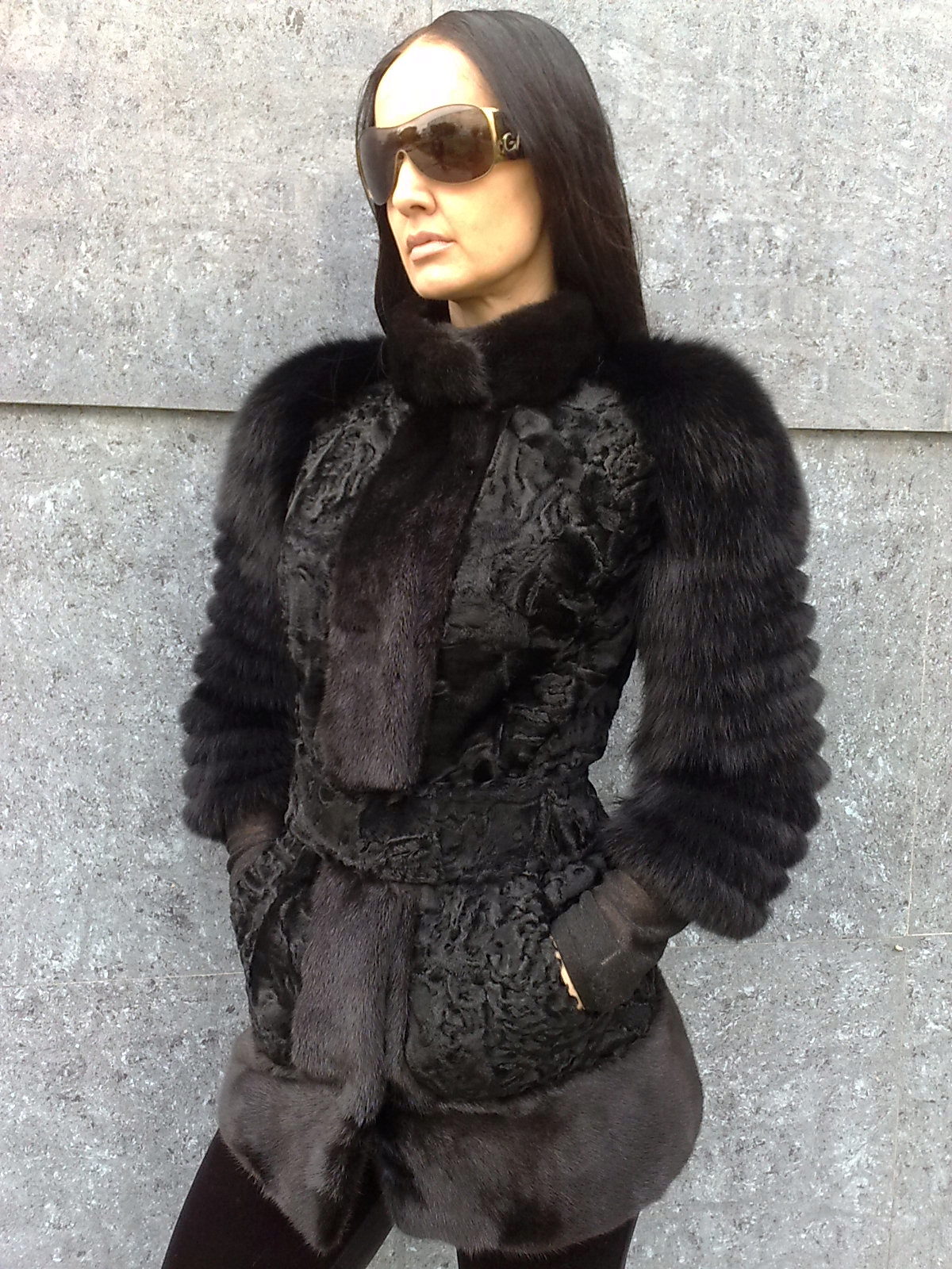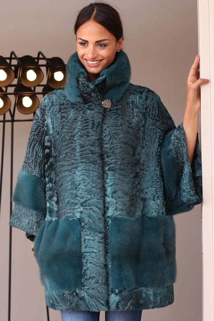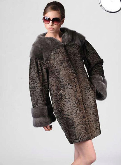 The combination of kurtochnoy fabric on the sleeves and the top of the fur coat with broadtail does look fresh and extraordinary.