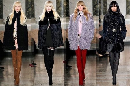 As already noted, designers are actively experimenting with the color of this fur in bright and unusual colors: lilac, filet, blue, coral, pink, green, etc. Such models look unusual, give the original and new look at fur coats from fur in general.