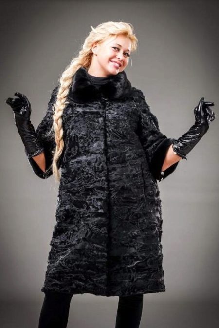 Astrakhan fur coats are represented by manufacturers in all sizes, a special place is occupied by a large range. Classic fit and details make such models a real find for obese women.