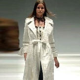 - Trapezoid silhouette of a coat of medium length with a tail sleeve cut in the shape of a butterfly.