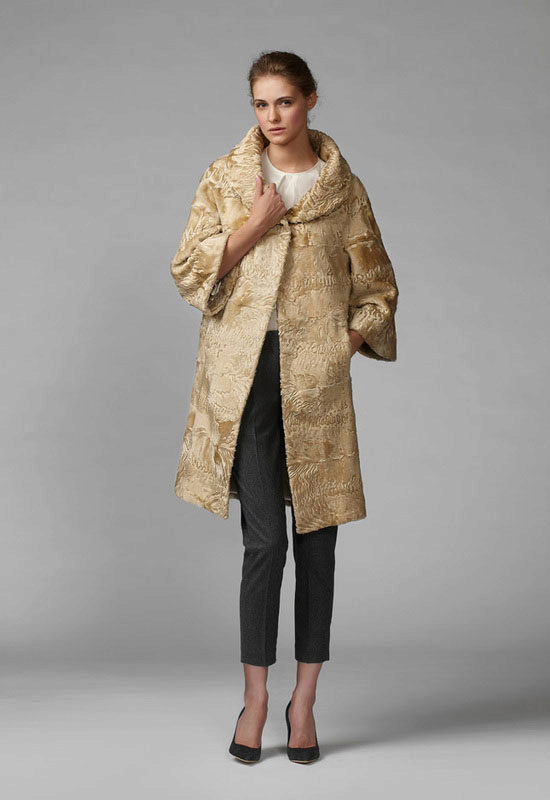 Such models do not look overly easy, as they have additional elements - a belt on the waistline, a turn-down collar, well-set sleeves, comfortable shoulders. Astrakhan short fur coats are more suitable for spring and autumn. Shorter models most like girls. In this coat you can go to study every day.