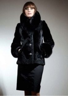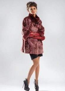 A short fur coat with sleeves ¾ will suit not only avtoledi, but also those who like to get out to events. The rich color of the coat with a decorative large button on the neck does not require bright combinations. Just wear a short black dress and long leather gloves. Short length of clothing allows you to wear high boots or boots.