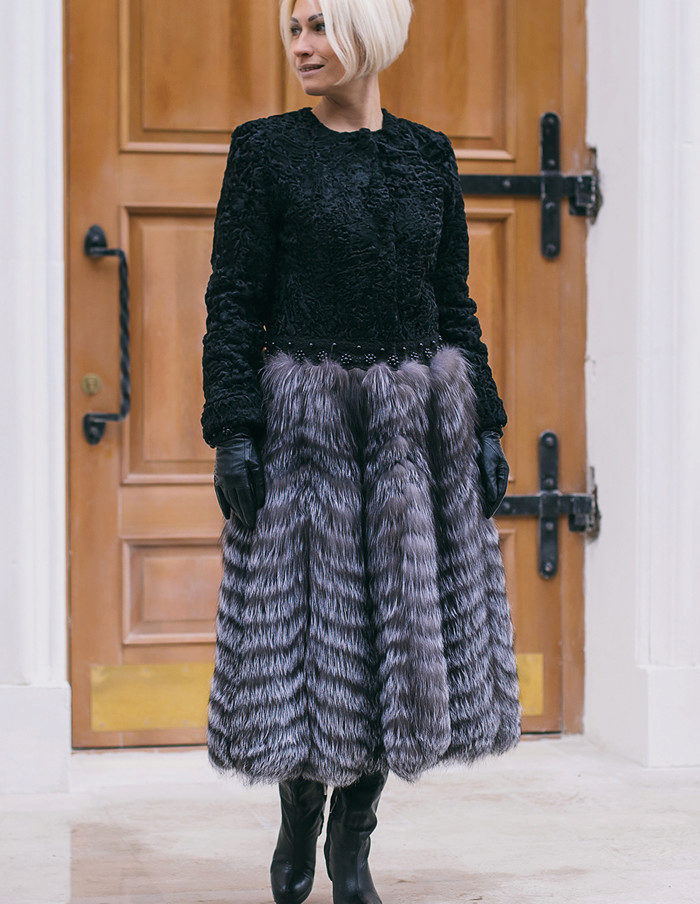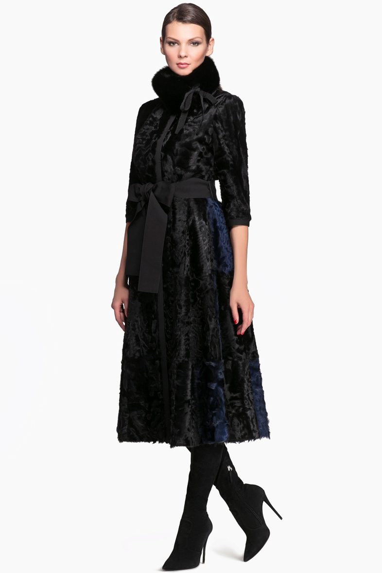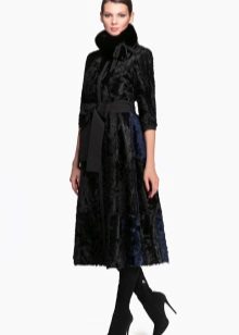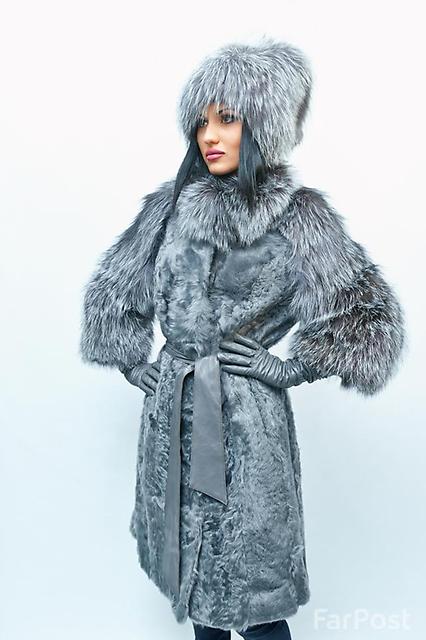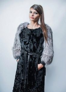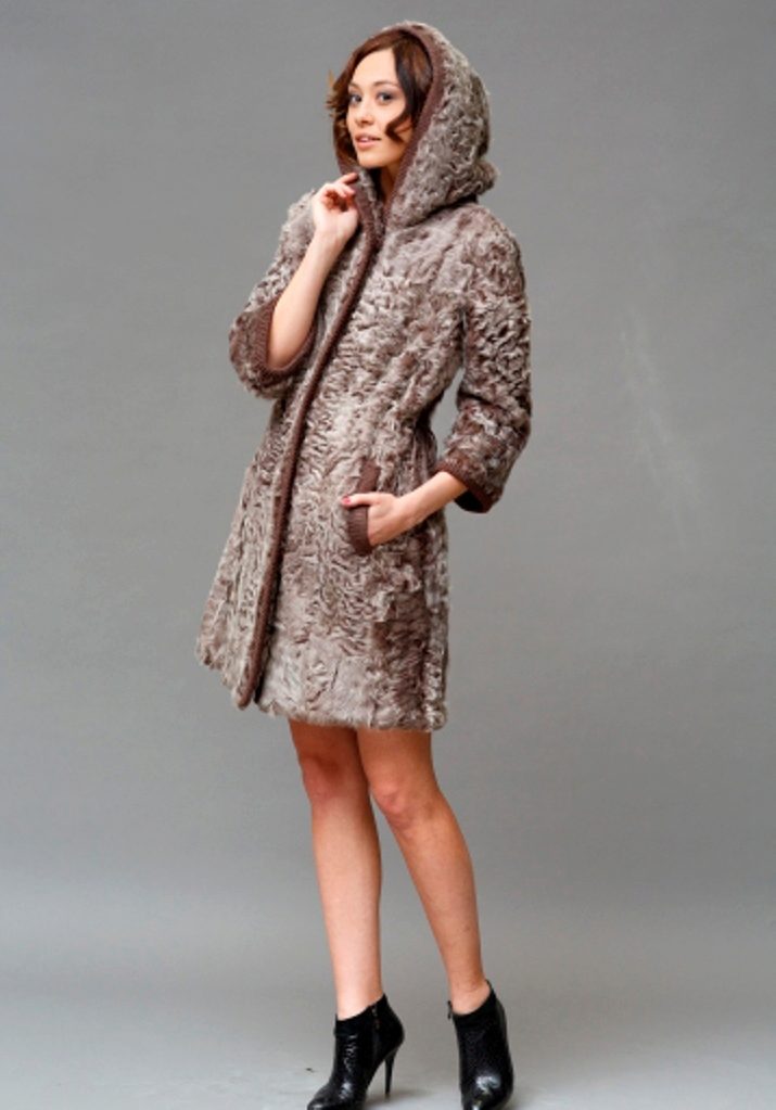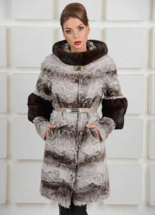 For long models, straight slightly loose style and long sleeves are most relevant. Fur coats are both with a hood, and without it, but then they have a stand-up collar.Goat is used for combination with other furs and materials. One of the most famous models is a goat fur coat with a silver fox hood. Such a product is more expensive than usual, but the combination of two different textures looks very stylish. Yes, and the goat's fur itself can be used to trim hoods, cuffs, hem.