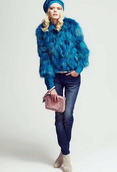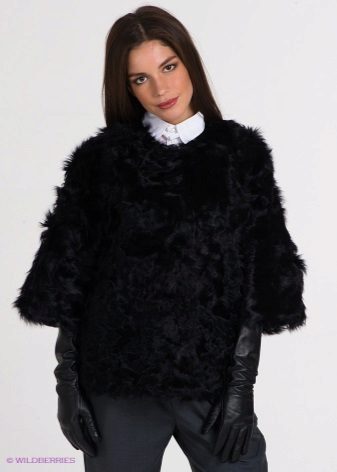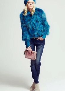 Goat coat is best suited for creating casual casual look.. Jeans, pants, jeggings in combination with shirts, sweaters or even tunics with jackets - all this fits under a fur coat. The main thing is that the bottom of the clothes does not stick out from under the short product. And, if he has sleeves ¾, then it is necessary to pay attention to the choice of what is worn under him.