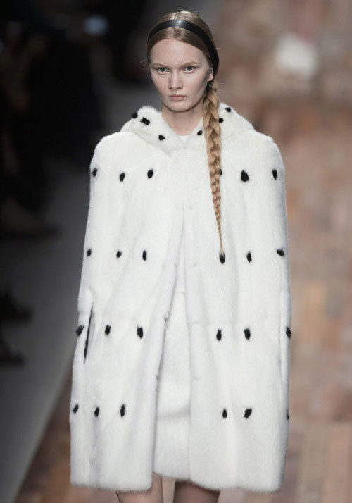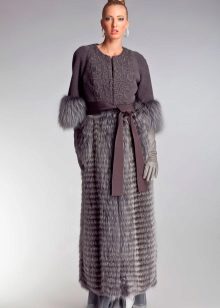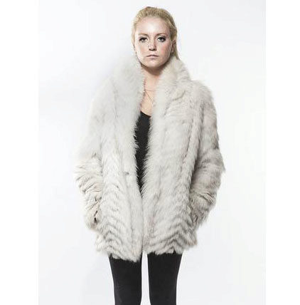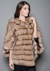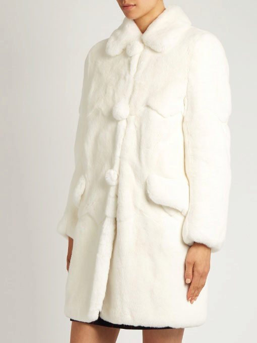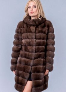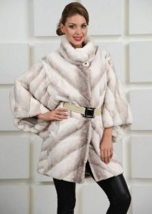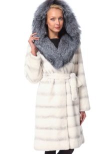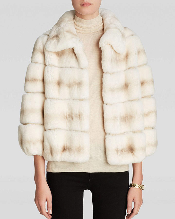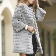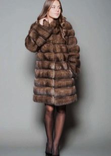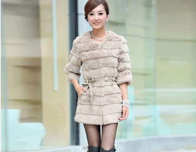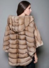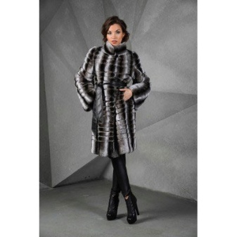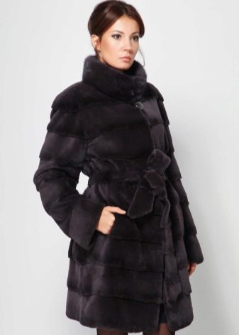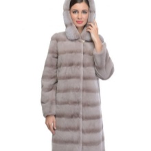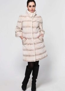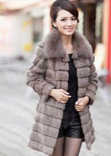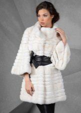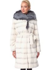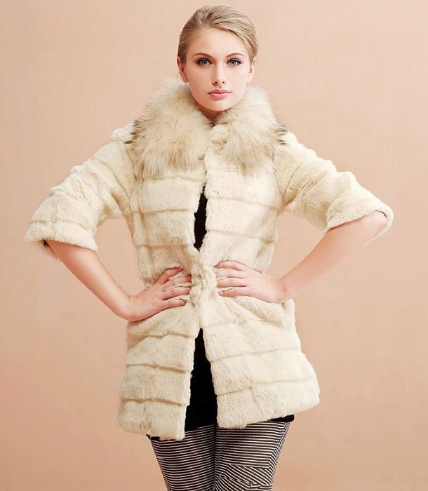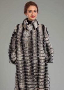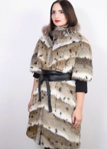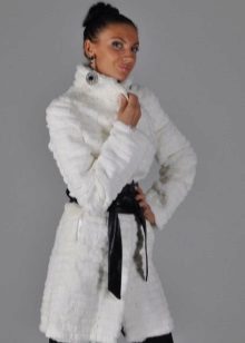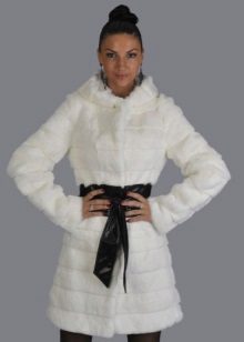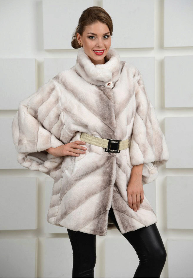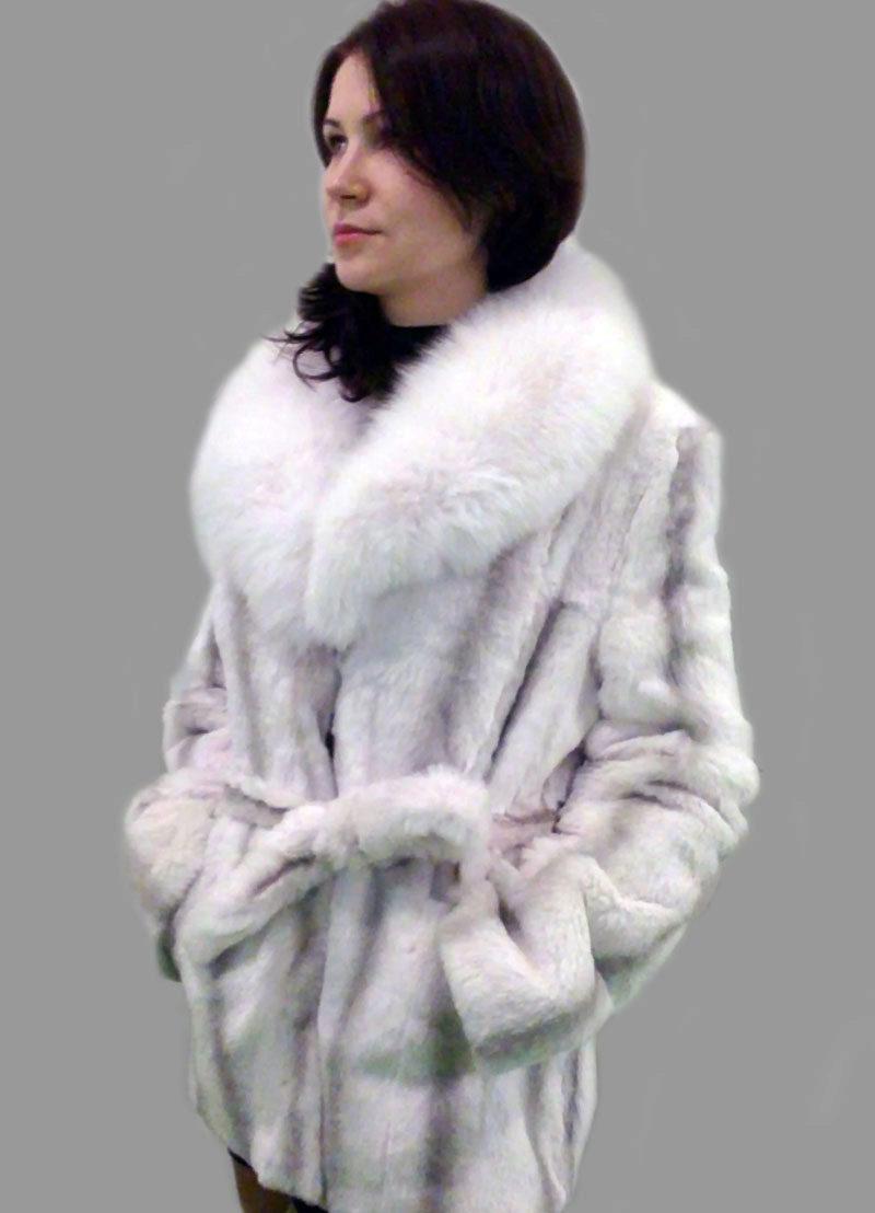 A fur coat transverse of a rabbit is sewn from fur strips arranged horizontally. Fashion designers can enhance the effect of strip separation by clipping them. Such a product made of snow-white rabbit fur looks especially attractive.