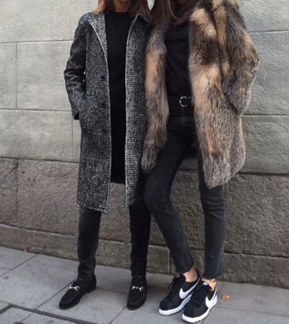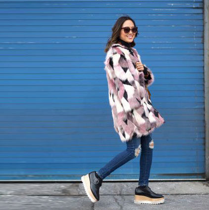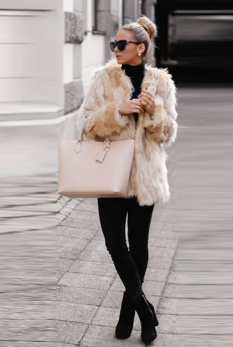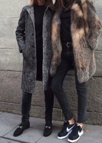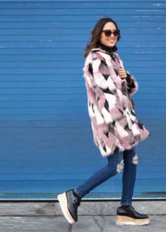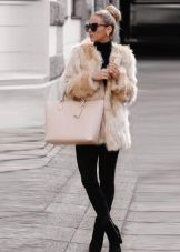 Fur coats of medium length, short fur coats and fur jackets look good with trousers that are narrowed to the bottom with arrows, narrow jeans, skirts to the middle of the knee, and shoes with a flat sole, wedge or heel. Sneakers or any other sports shoes are not recommended.