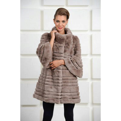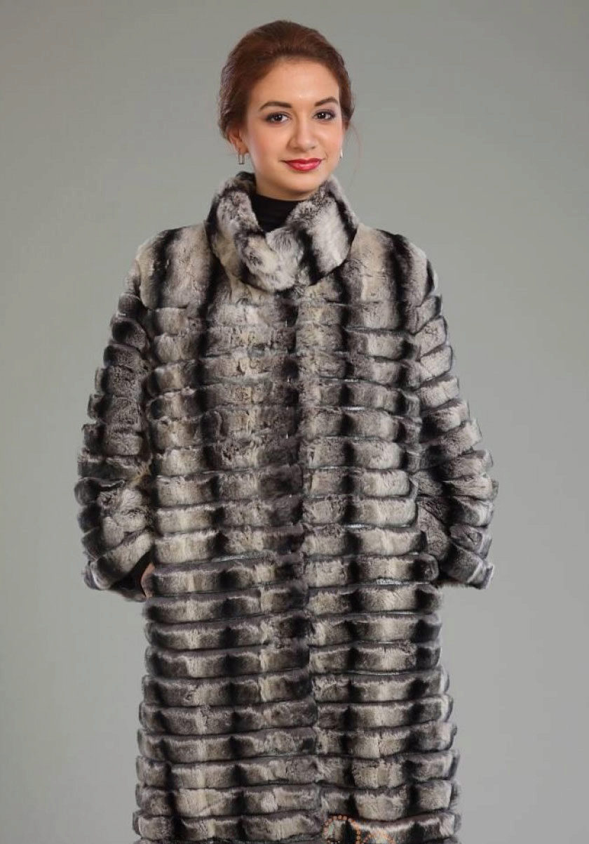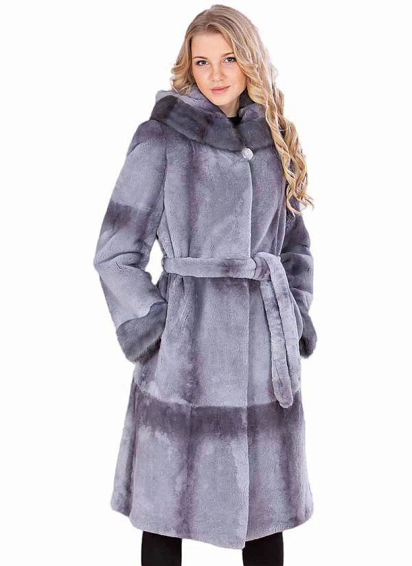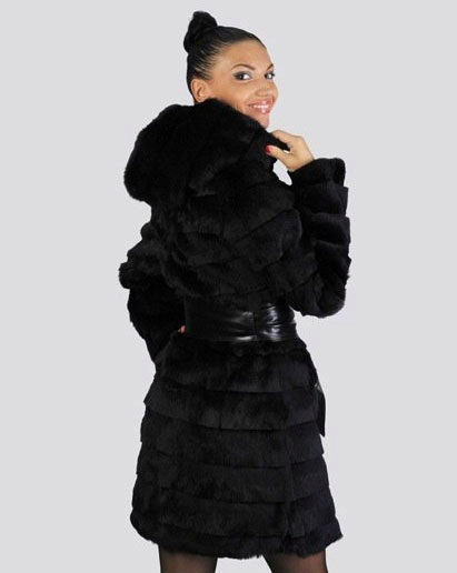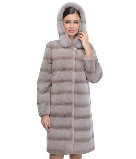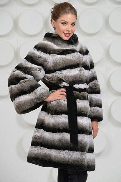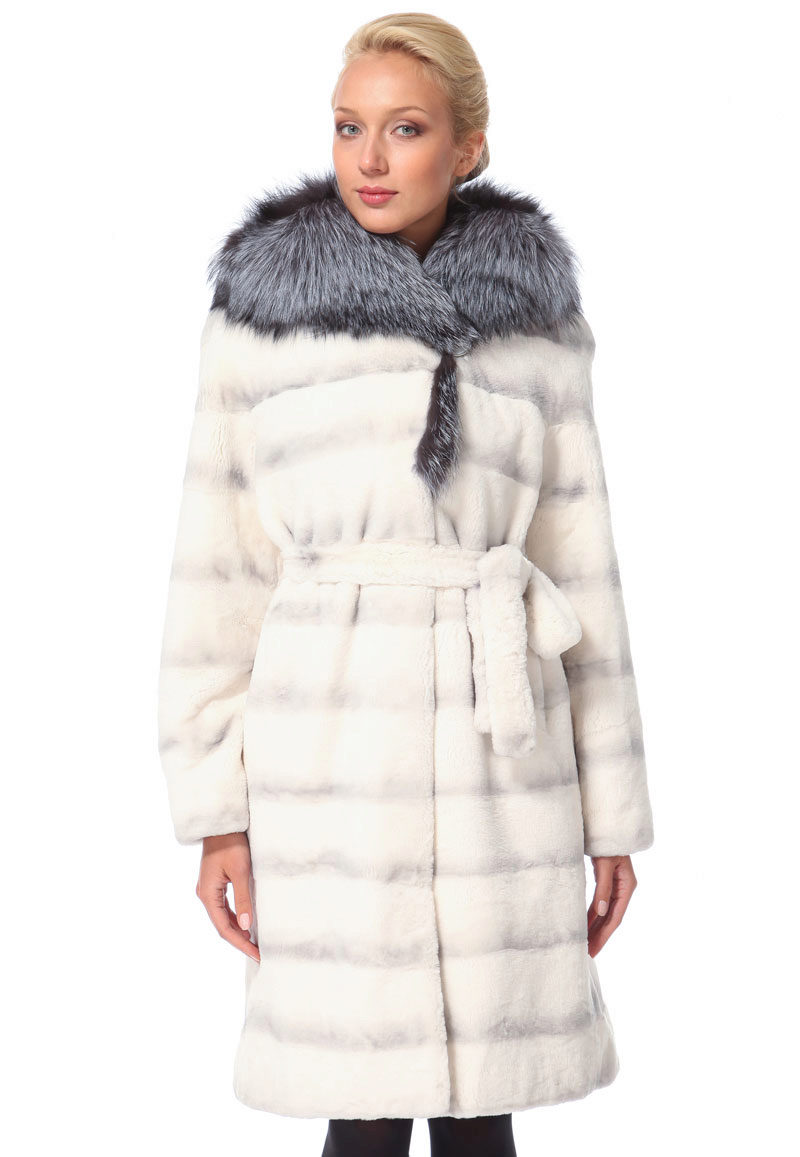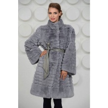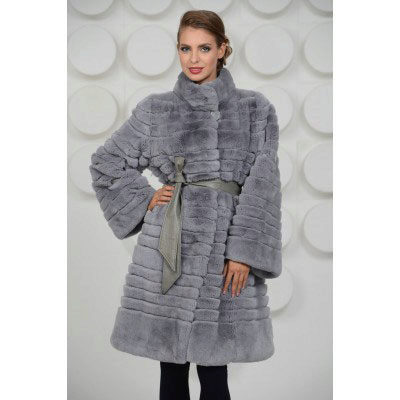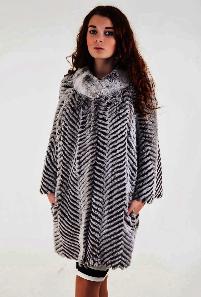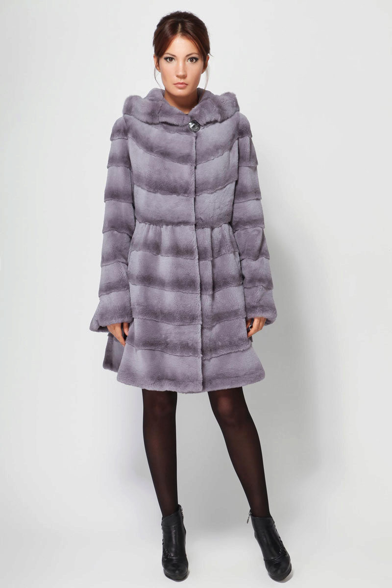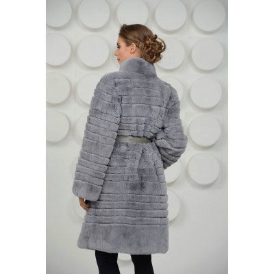 Trapezoid cross-section of a Rex rabbit under a chinchilla can be worn with or without a belt. The soft transition of the color of the stripes from light gray to black gives the product a special refinement.