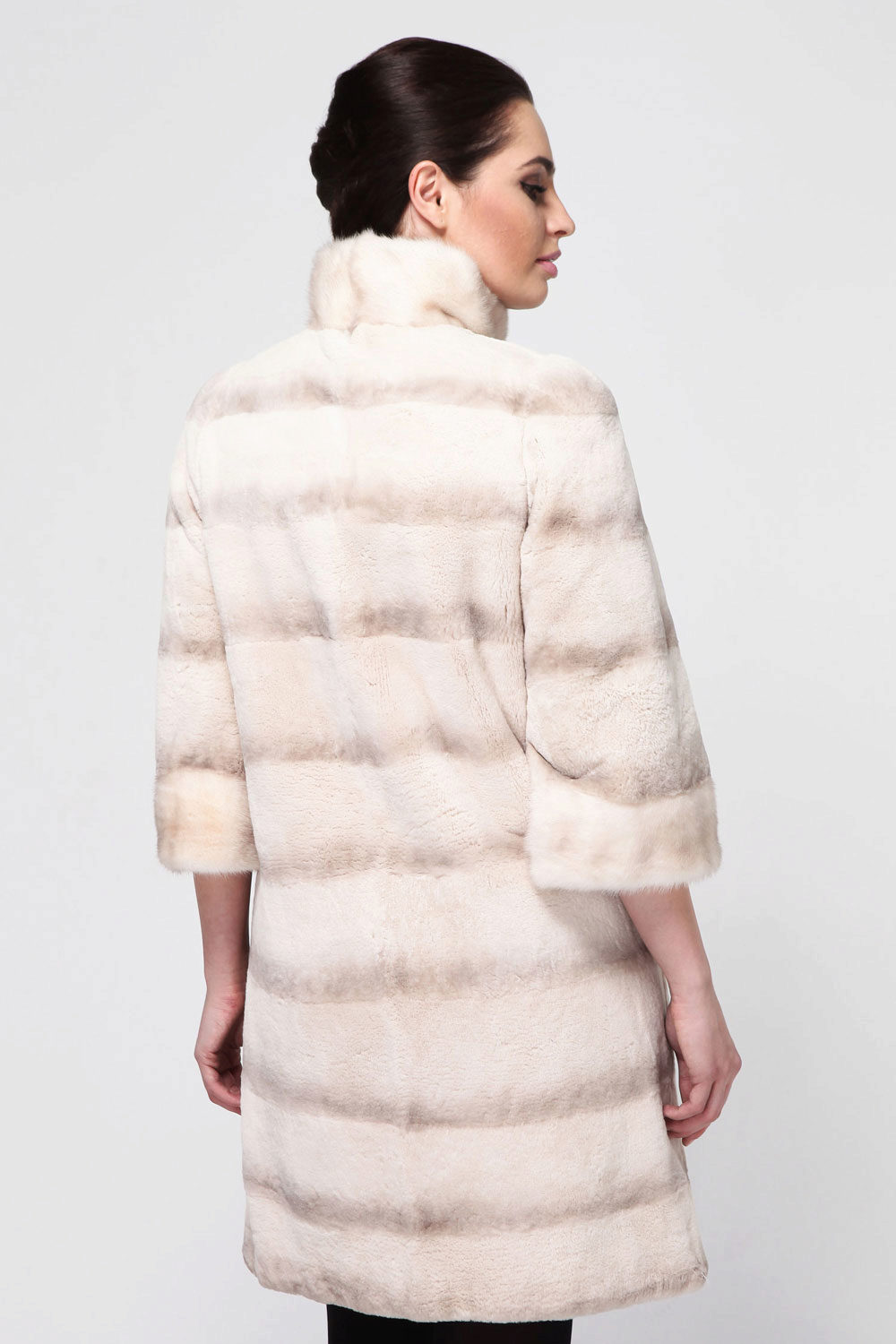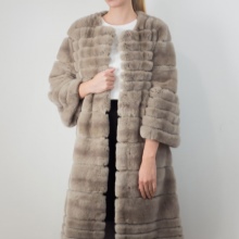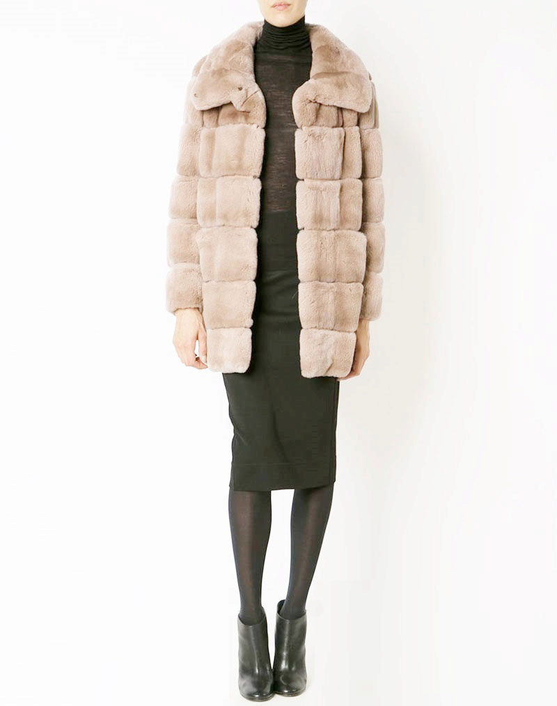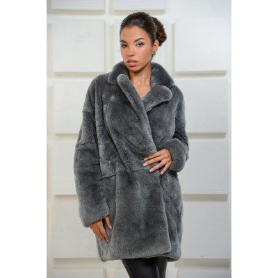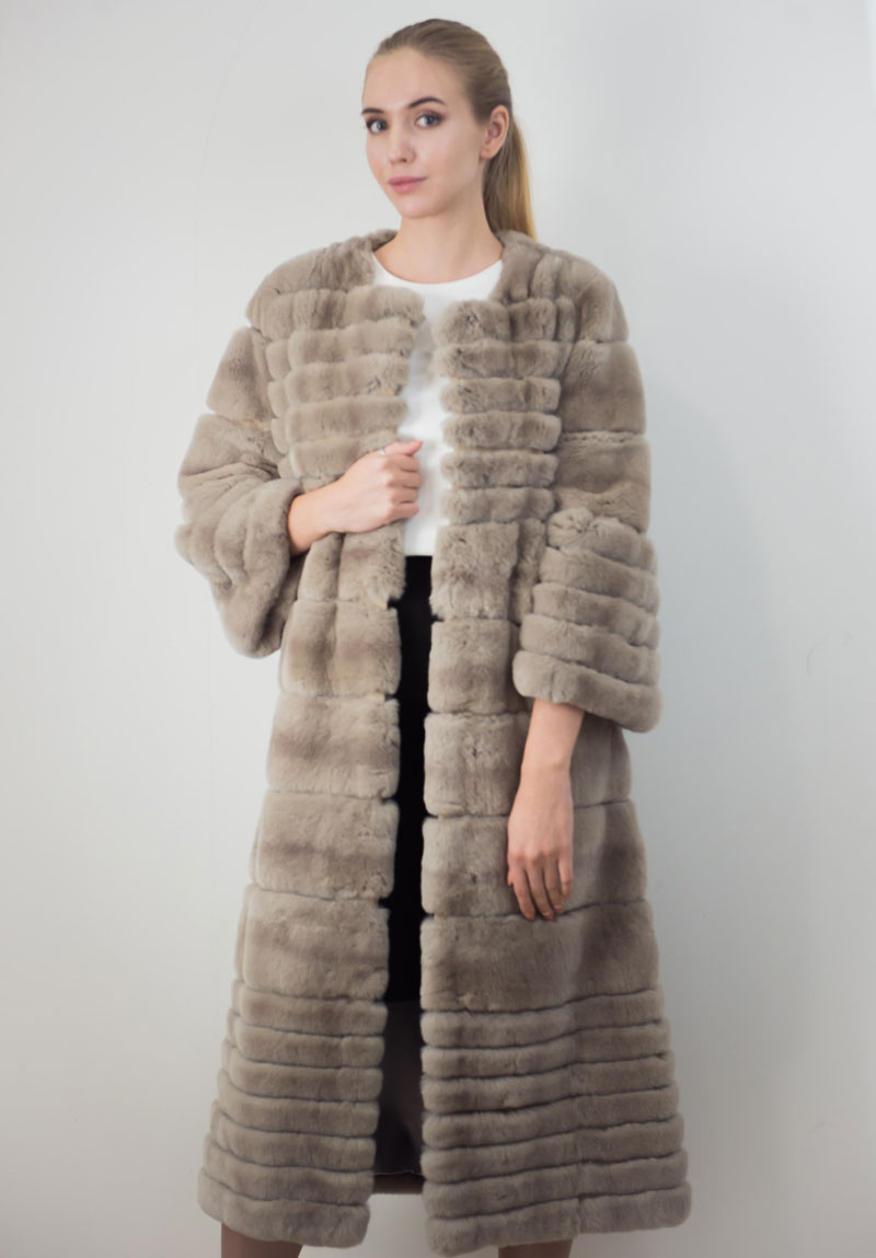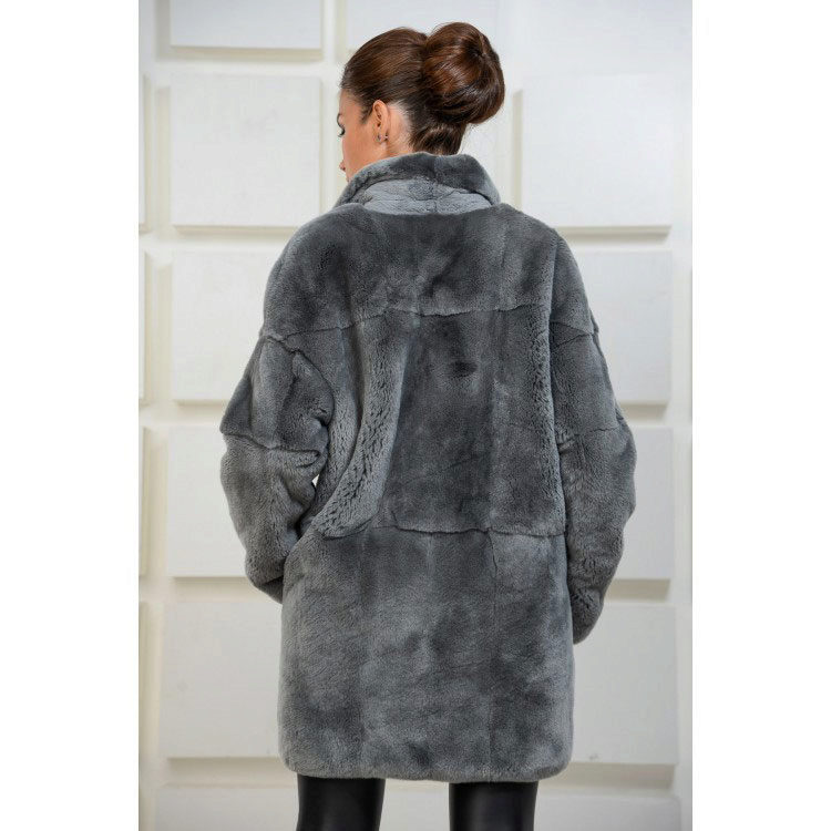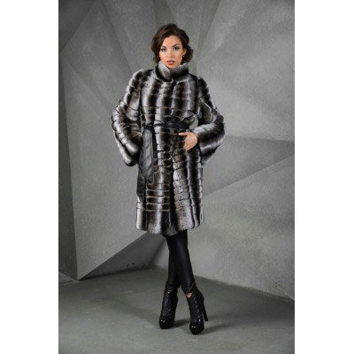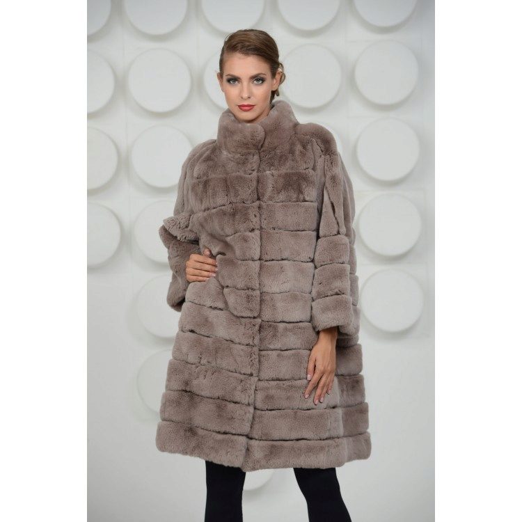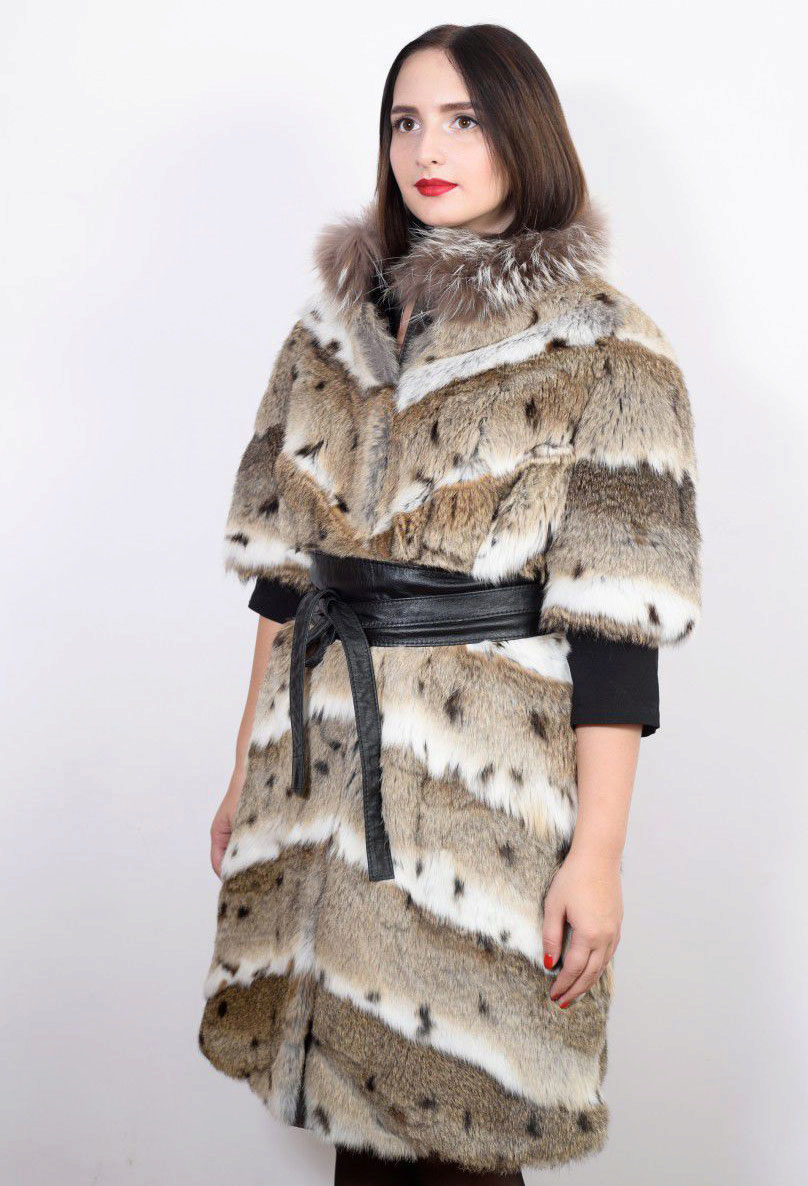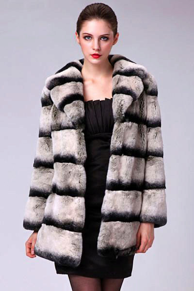 Trapezoid cross-section of a Rex rabbit under a chinchilla can be worn with or without a belt. The soft transition of the color of the stripes from light gray to black gives the product a special refinement.