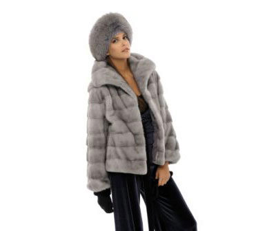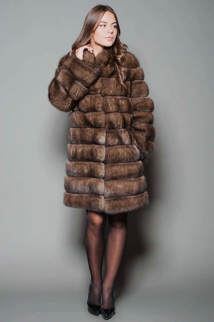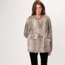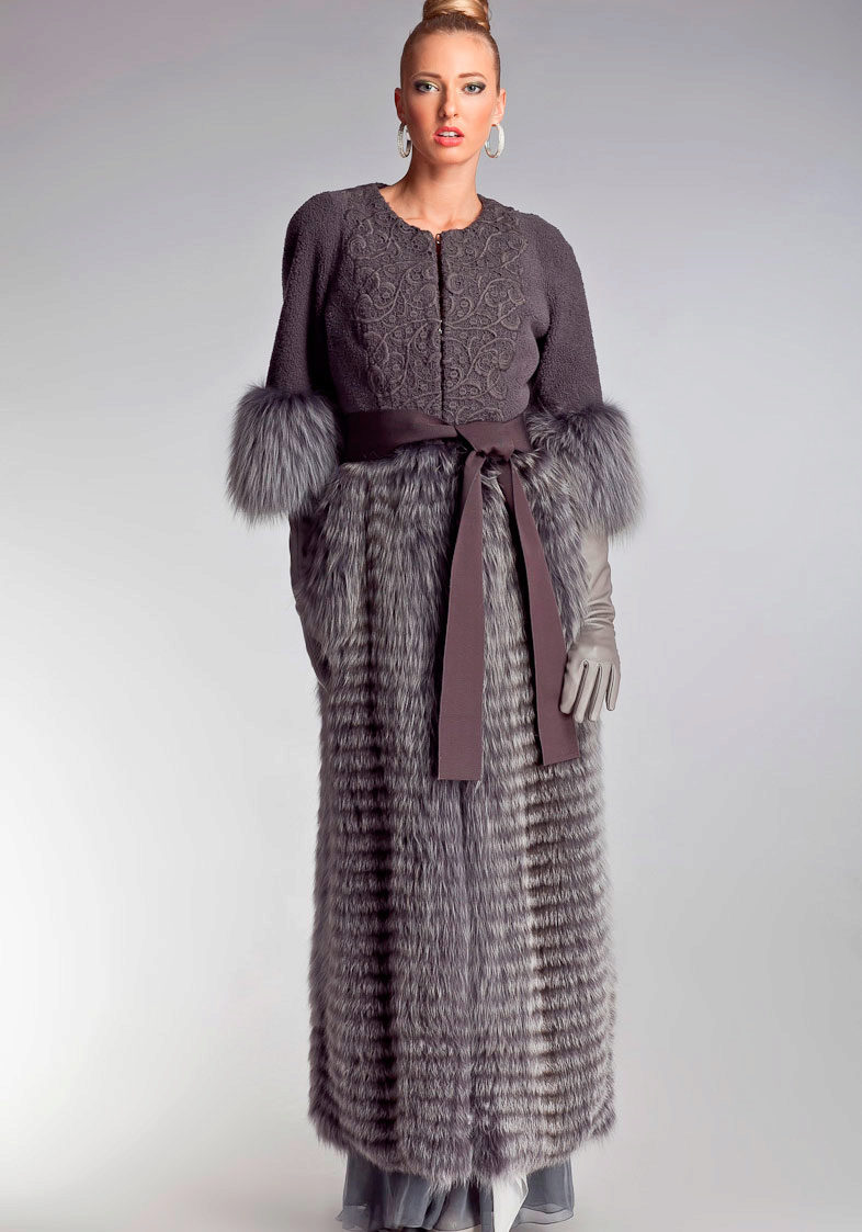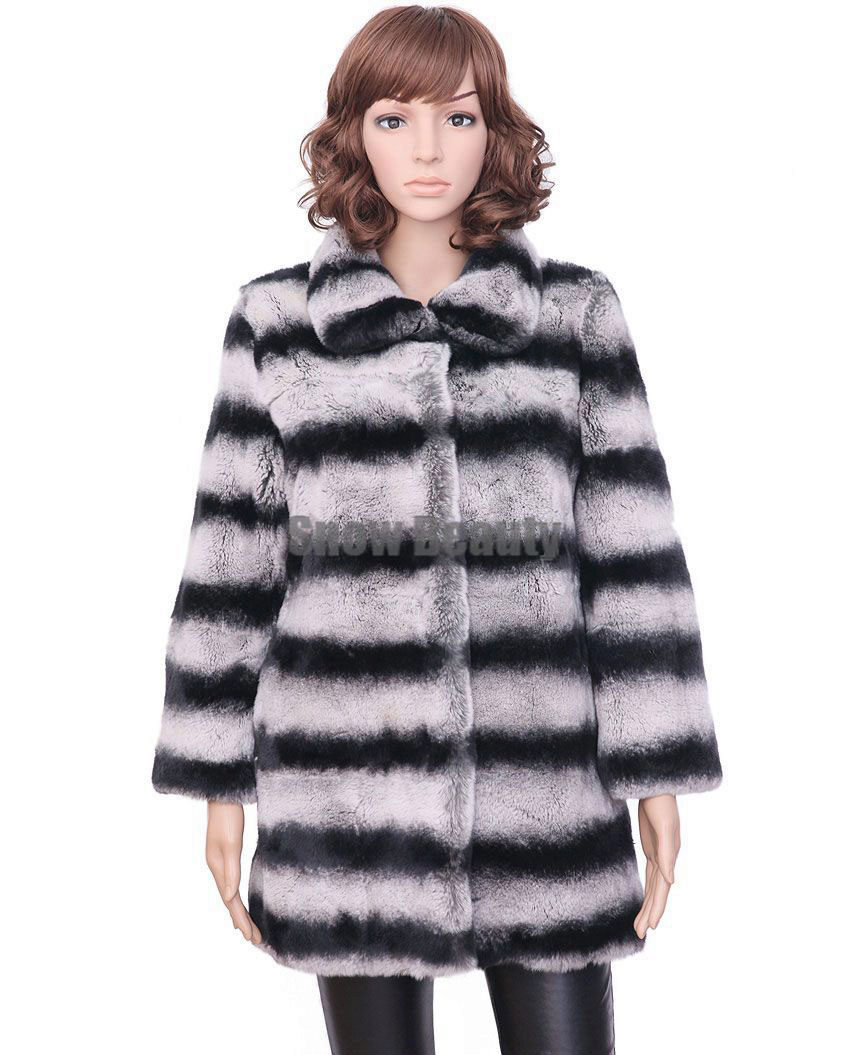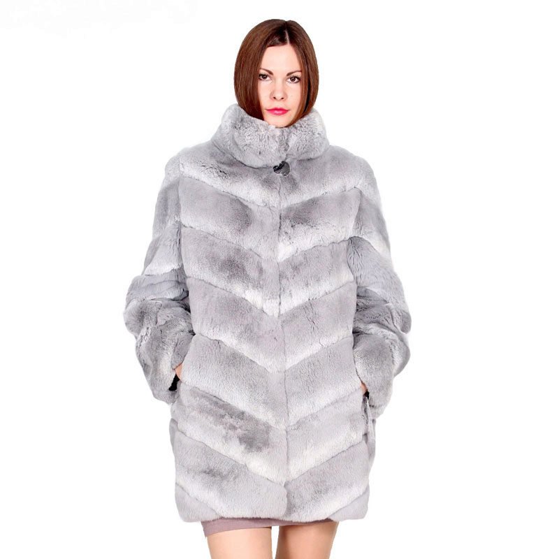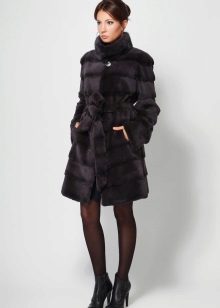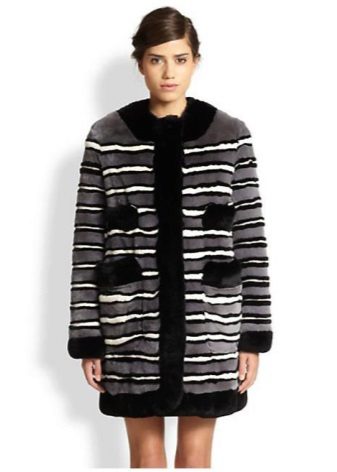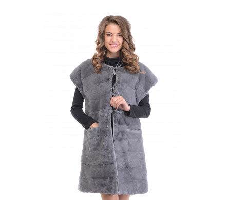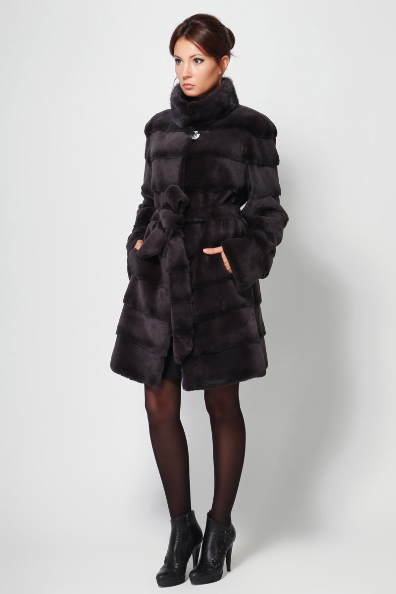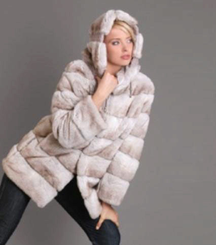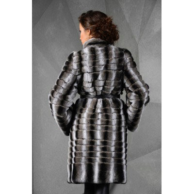 Trapezoid cross-section of a Rex rabbit under a chinchilla can be worn with or without a belt. The soft transition of the color of the stripes from light gray to black gives the product a special refinement.