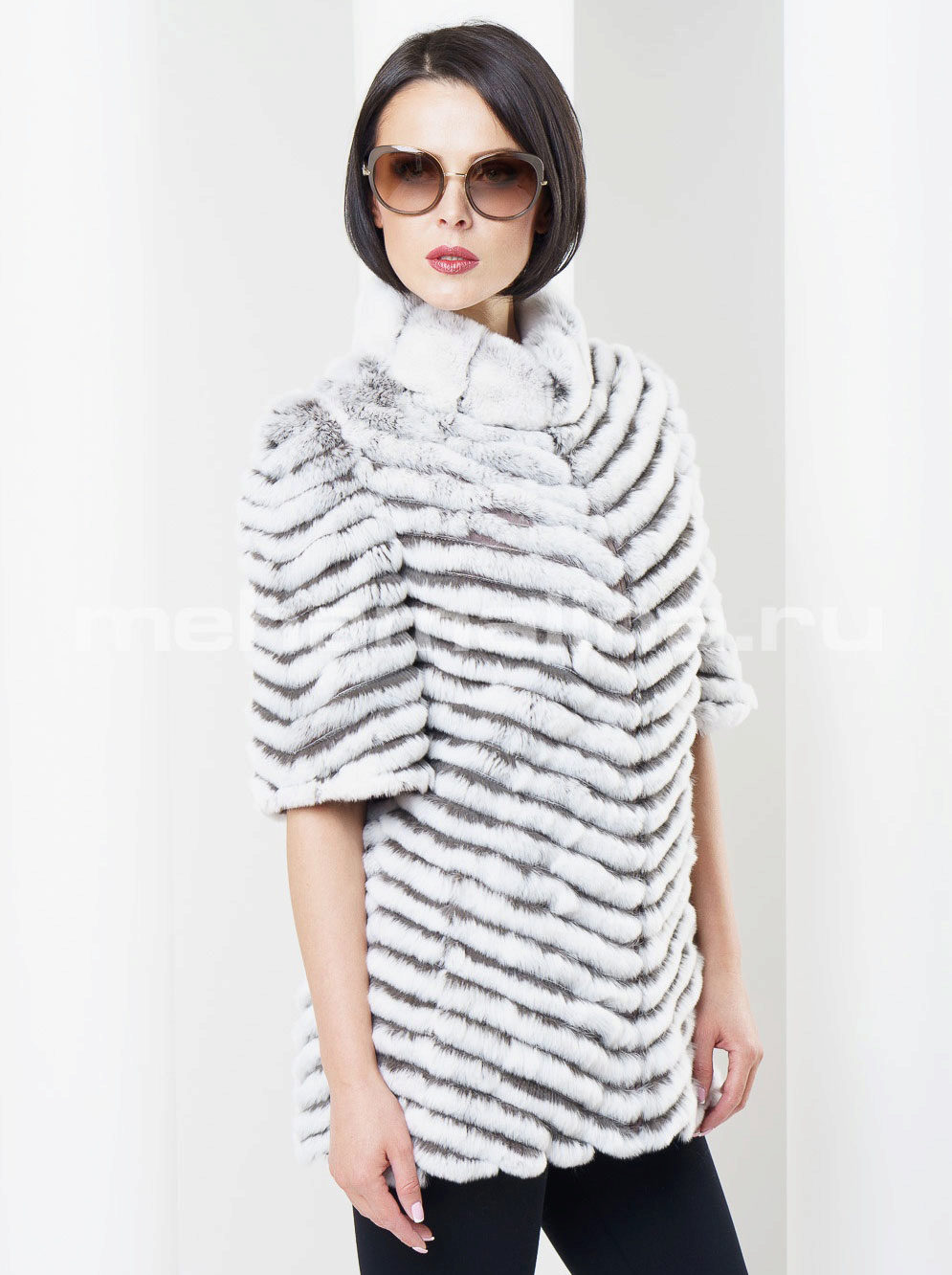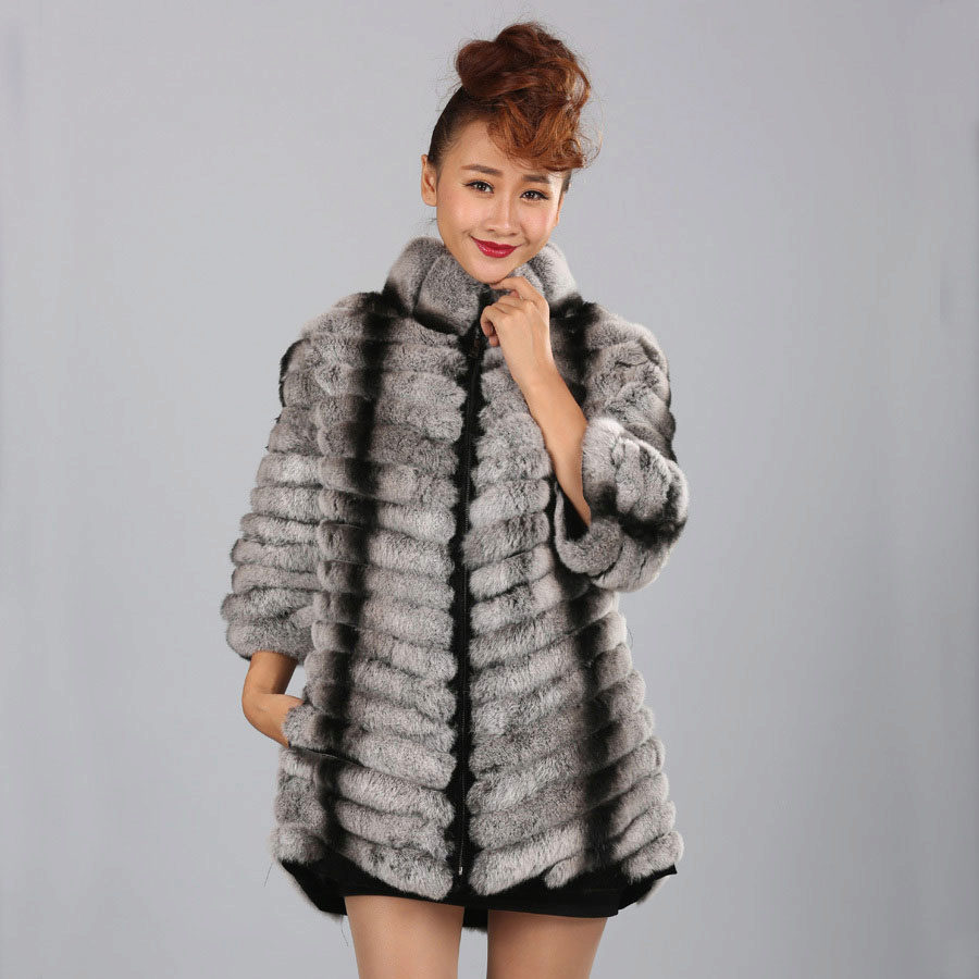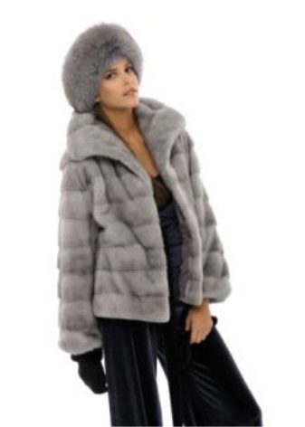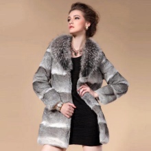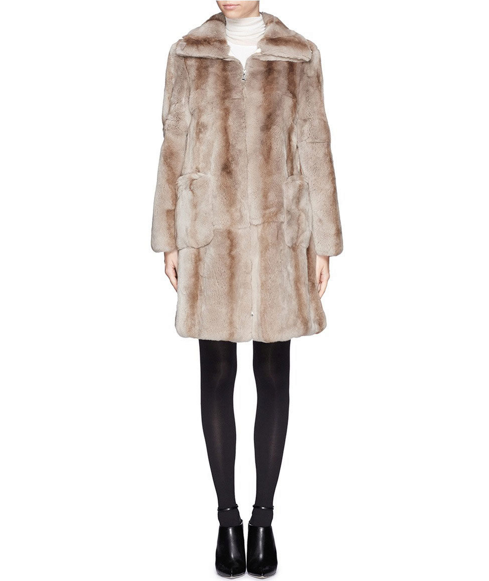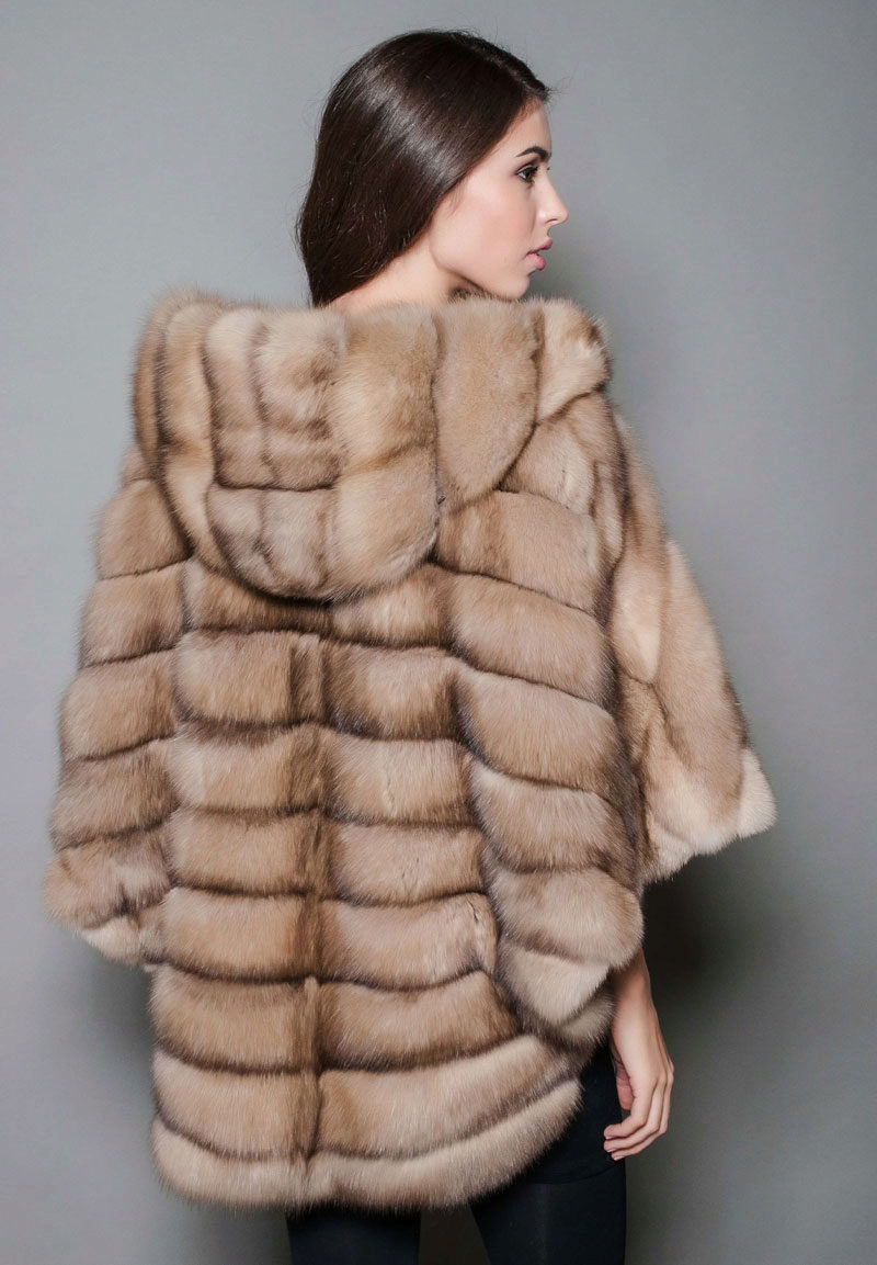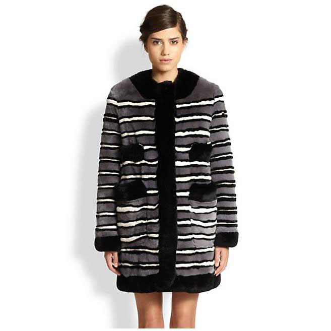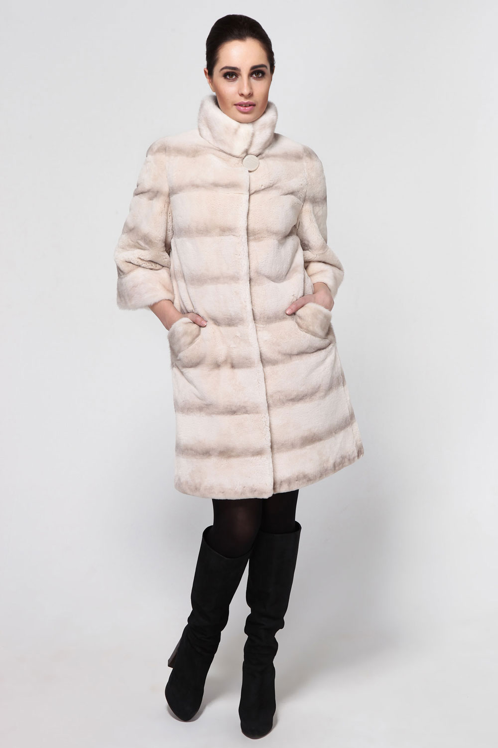Trapezoid cross-section of a Rex rabbit under a chinchilla can be worn with or without a belt. The soft transition of the color of the stripes from light gray to black gives the product a special refinement.