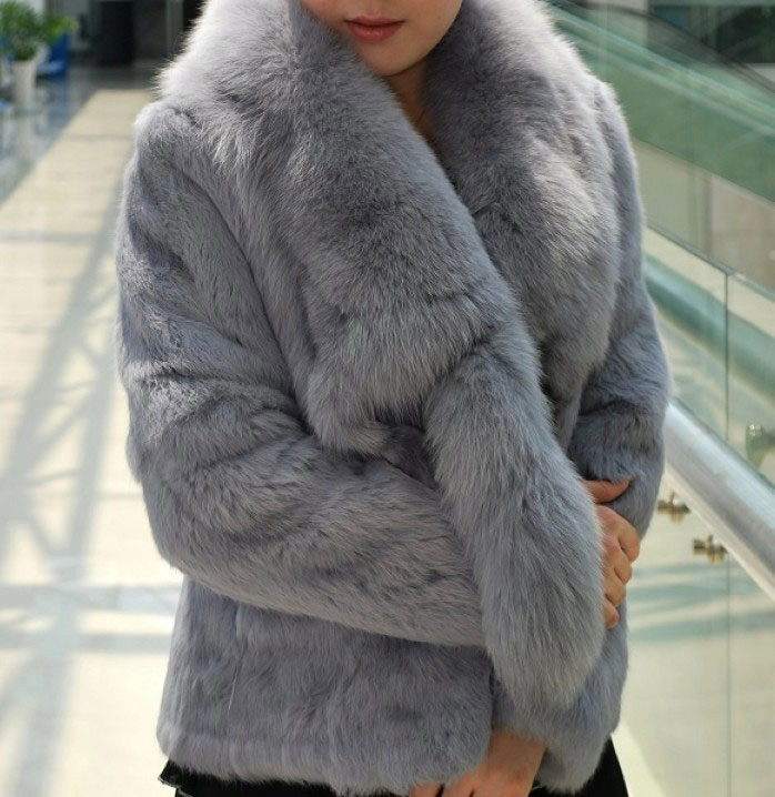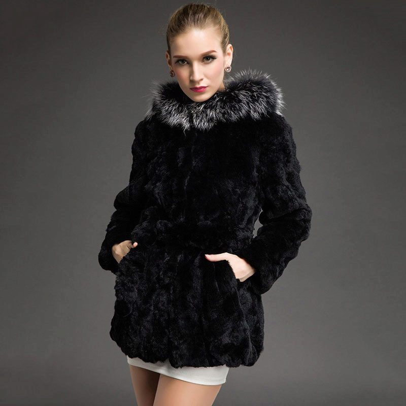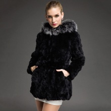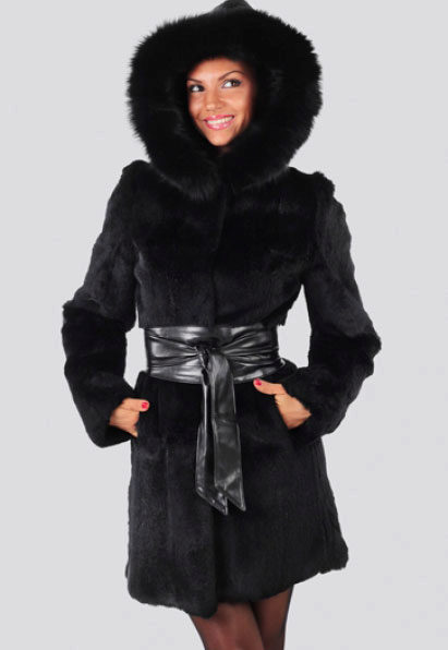 Rabbit fur coats of a straight jacket silhouette with a stand-up collar are quite elegant. A rabbit fur coat with a hood is very practical, for such a product it is not necessary to look for a suitable headdress, it is enough to throw a hood - and the head is warm. The existing collar is able to replace a scarf, a turn-down collar can be raised up, protecting it from the piercing wind. And the collar can be sewn from another, more expensive and fluffy fur, for example, silver fox. A rich fur trim can go along the bottom of the product.