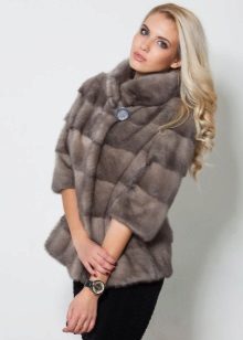 A neat straight-cut jacket of azure orylag will not leave indifferent any woman of the fair sex - narrow transverse fur stripes, stand-up collar, sleeves shortened to the elbow and incredibly soft velvet fur will create a truly luxurious and incredibly attractive image.