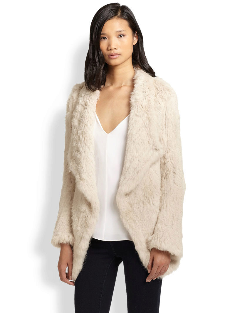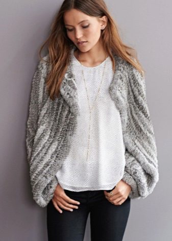 Stylish lightweight fur coats from a rabbit without a collar and with three-quarter sleeves are an exquisite choice, such an outfit is suitable for both working days and solemn exits. For trips to the theater or to exhibitions, a cape, a swinger or a rabbit coat is useful, they are sewn both from whole skins and from pieces. Long jackets made of rabbit fur, especially snow white, are loved by young girls.
