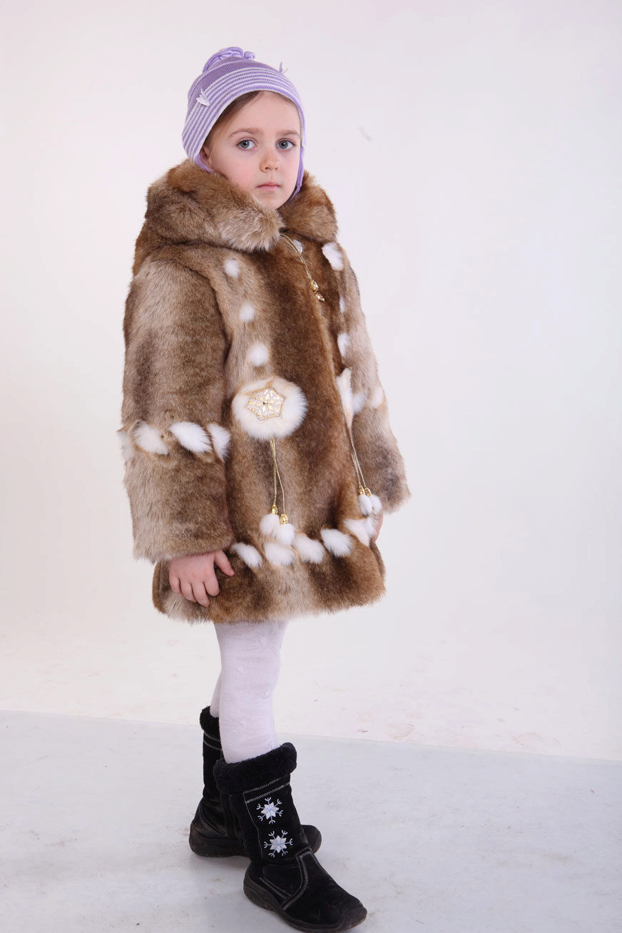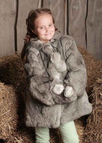 Parents are happy to buy rabbit fur coats for their children, as they are light, warm enough, comfortable for active children, quite affordable and can be changed every season as the child grows.