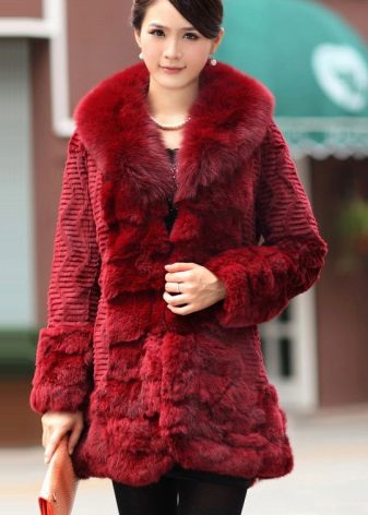 Rabbit fur is easy to dye, and the natural shine after this procedure will not be lost. Marsala's rich and romantic color is deep and neutral, it looks luxurious even in rabbit products. A fur coat of a muted burgundy color with a brown subtone will give confidence to its owner and convince others of its irresistible character.