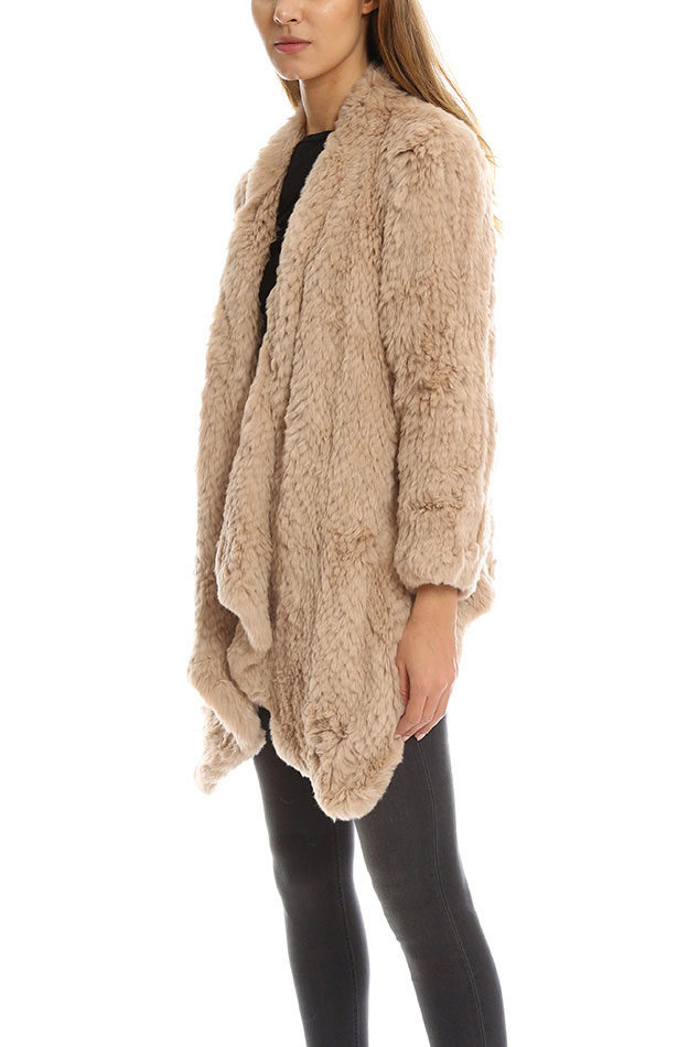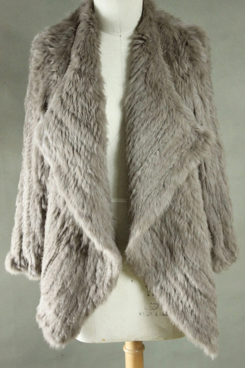 Fur coats made of rabbit fur are made of special fur "yarn". Split yarn is cut out of the previously pulled out rabbit skins in a spiral, then a special elastic base is woven around it.Products made of knitted fur are durable, practical, plastic and, of course, unique.