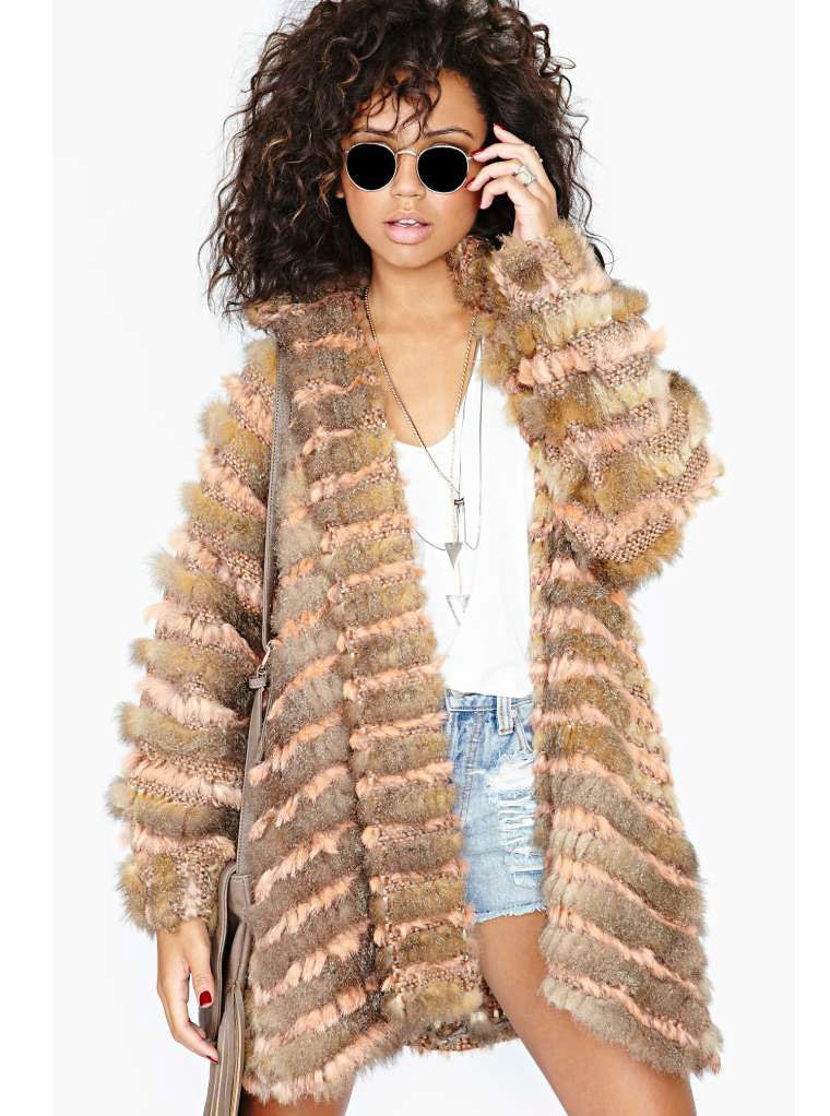 Rabbit fur coats on a knitted basis are very light, they are not suitable for frosts, rather they are designed for a demi-season or a European winter. The main advantages - the ability to elegant drapery and a good fit on the figure. Fur coat with knitted lining looks almost like an expensive fur coat. Knitted coats with rabbit fur inserts are quite popular. Such models are not very expensive, but they look quite decent and prestigious.