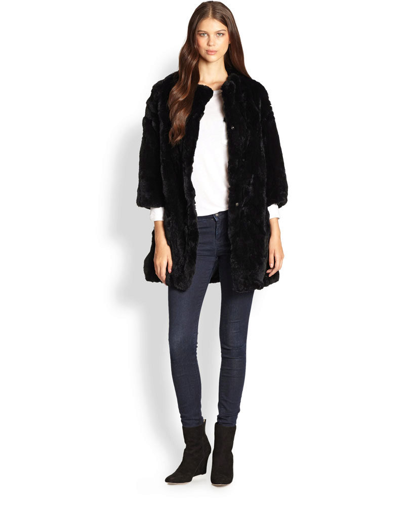 Fur coat to the floor is a permissible style for stronger and wear-resistant furs, to which rabbit, alas, does not apply. Places that often come into contact with surfaces quickly wear out so that this does not happen with the hem of a rabbit fur coat, we advise you to purchase a product of medium length. A knee-length fur coat is quite practical, it will not get dirty from the bottom, and it will warm up quite well. Shortened models of fur coats are suitable as youth variants or “avtoledi”, jackets, jackets, fur coats and butterfly fur coats up to the waist or to the middle of the thigh.