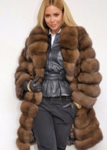 Pretty stylish look and combo coatscombining skins of different animals. So, for example, marten is actively combined with mink fur, making the main part of the product from the second, and any part, such as a collar, from the first.