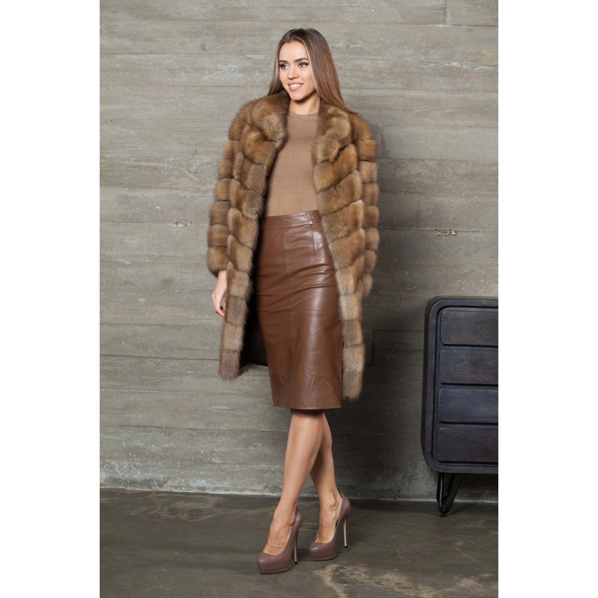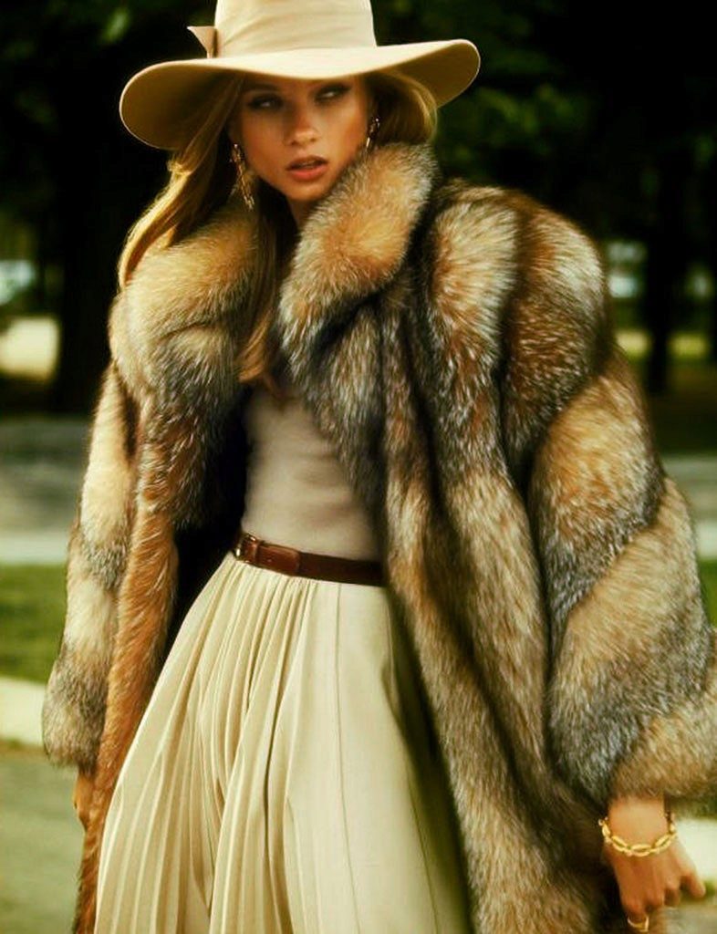 - An image that is in no way inferior to all the others can be created with a simple set of a free cut tweed skirt, which is longer than the knee, and also a satin blouse with a long sleeve of bog shade. This combination is complemented by a stylish fur coat made of cross-cut marten fur patches, with a 3/4 sleeve.