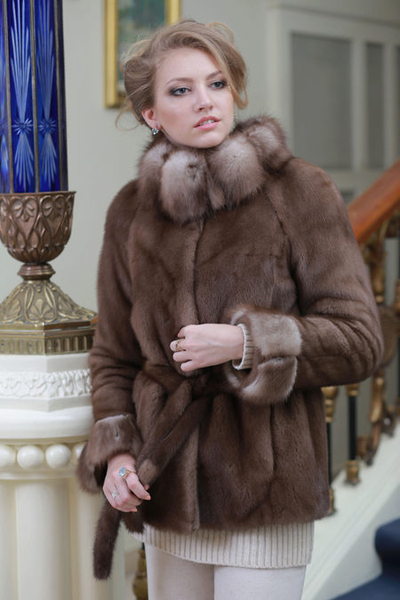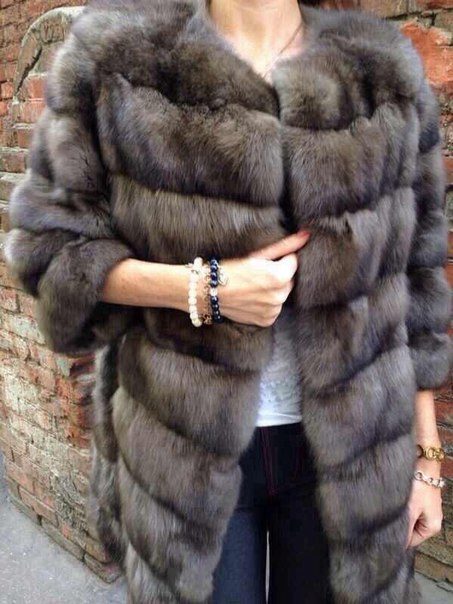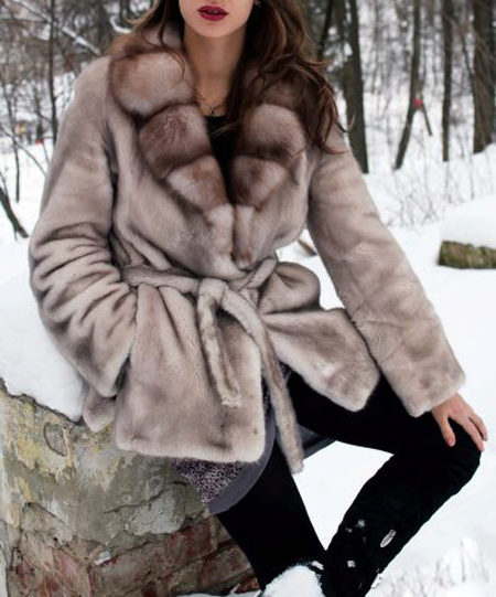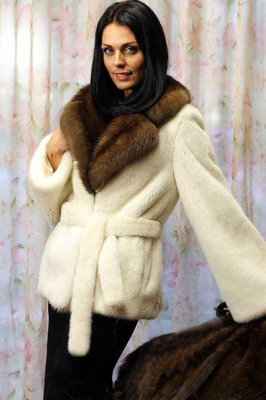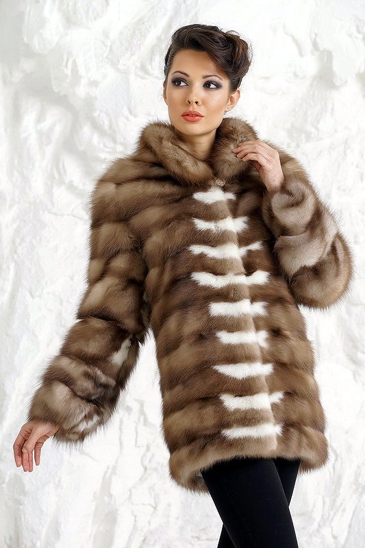 - A fur coat made of a combination of two furs can look not only interesting and unusual, but also very beautiful and truly luxurious. The lighter transverse patches are made of fluffy marten fur, the darker parts of the sleeves and collar, having a short nap, are made of mink fur.
