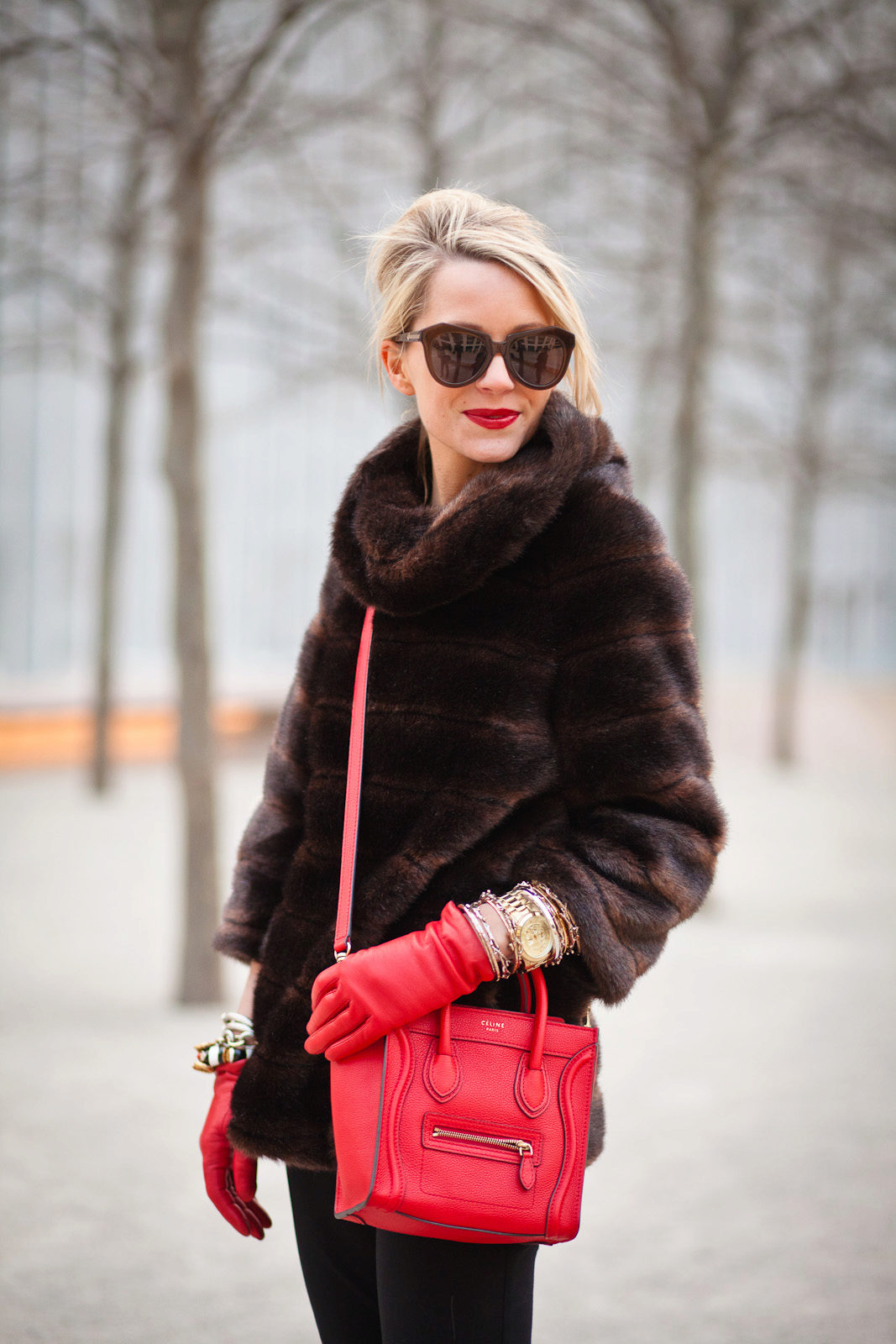 Stylish bag and trendy sunglasses fit perfectly in the outfit.