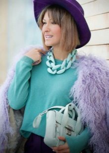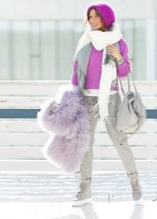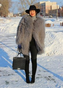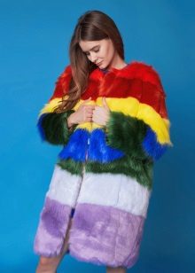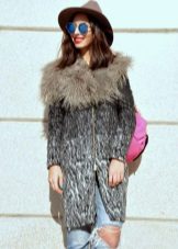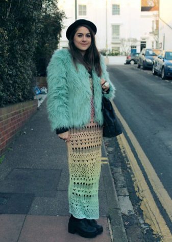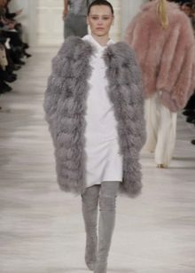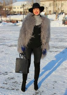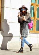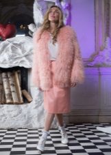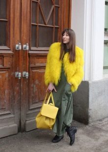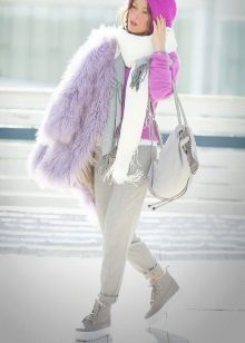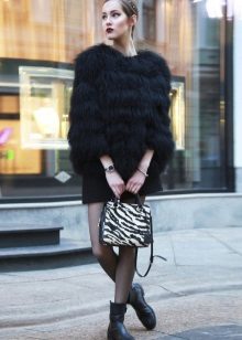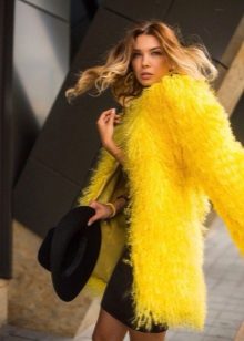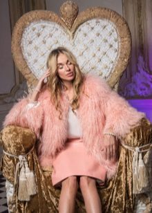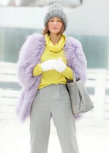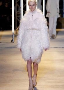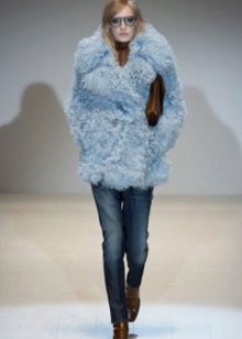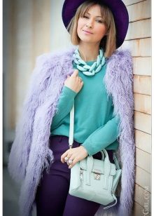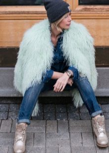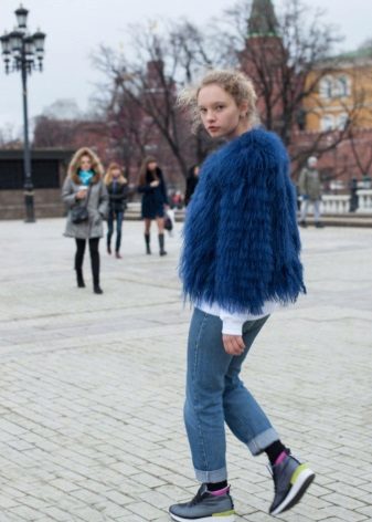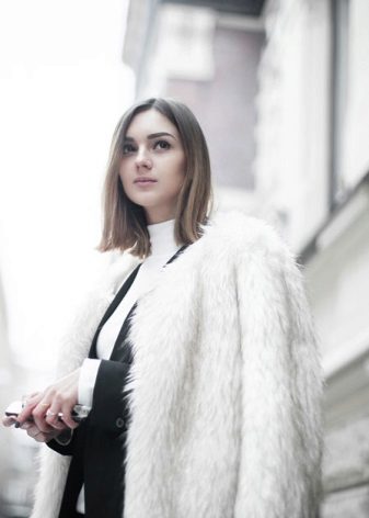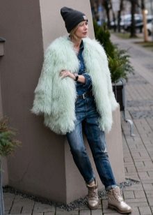 In principle, with the correct selection of elements of style, such a fur coat can be combined with anything, especially in the coming season. But the stylists still recommend to stay on narrow trousers and similar silhouettes. The shoes are perfect shoes with a small wide heel or matt leather boots. You can also wear a skirt and a skirt, but here you should be careful. This combination is not suitable for everyone and can make the image heavier.