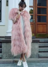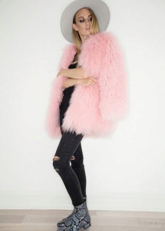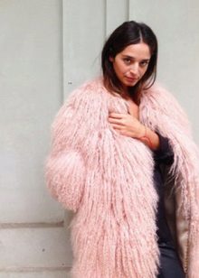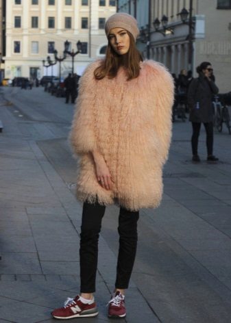 The most top-notch images of the last season remains the "combination of incompatible." And the llama fur coat fits this style perfectly, if you combine it with tight pants and sneakers or with a voluminous long skirt and boots in the grunge style. Fur coats made of powder-colored llama look very impressive. You can wear it with the same narrow pants, rocker boots and a hat.