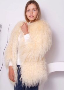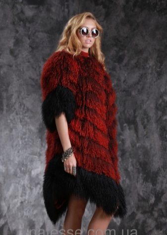 - Combined model. Since llama wool is rather voluminous and not the warmest, designers prefer to combine it with other types of natural products. For example, with the loose fur of a muton and a rabbit, as well as with a suede or rabbit. With this approach, the product is obtained with a beautiful structure of fur. Also, besides fur coats, llama wool is often used in the finishing of sheepskin coats, jackets or belts.