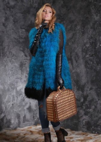 - Fur coat vest. Such a model, as a rule, has the same straight cut and a length slightly above the knee, but a strongly shortened sleeve. Of course, for wearing in winter, such a model will not fit perfectly, but in the autumn period it will add to your look unusual and warm.
