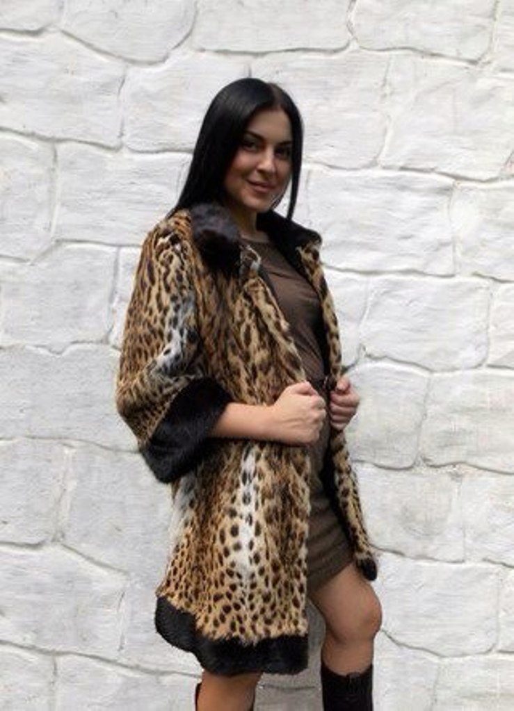 Ocelot fur is rare, so designers offer mostly mini or midi length coats. Ocelot fur coat can be added with other fur. Designers often use very expensive furs for finishing like a sable or mink skin.