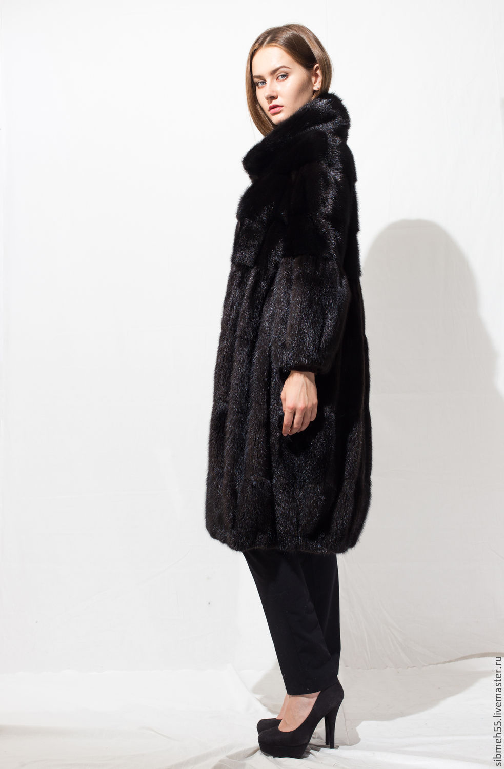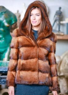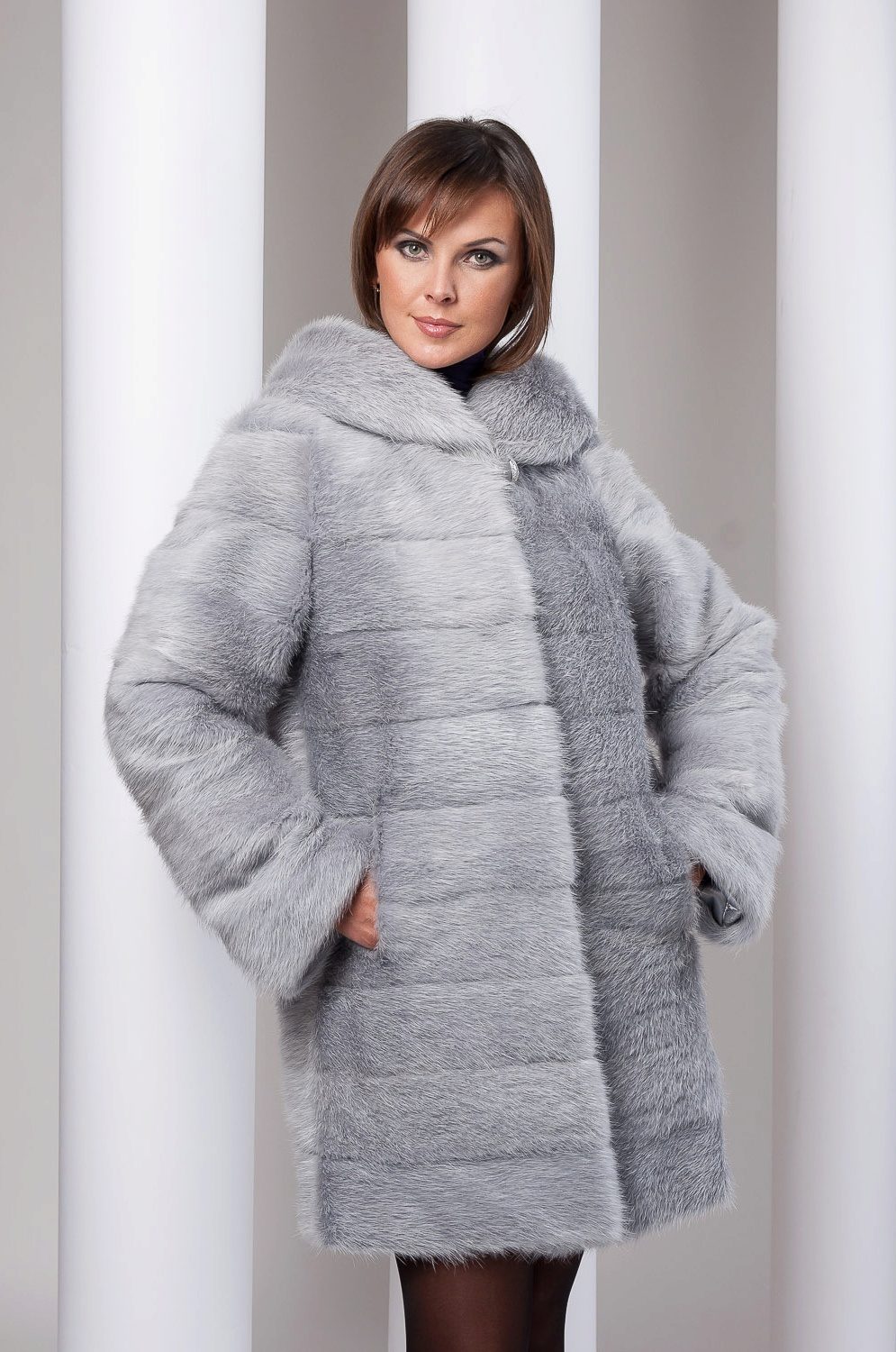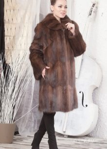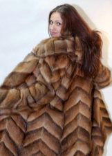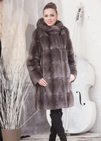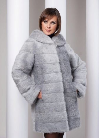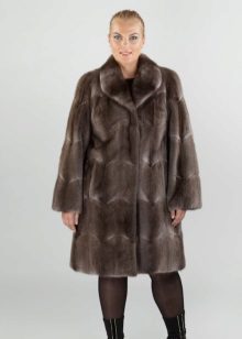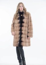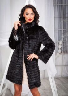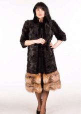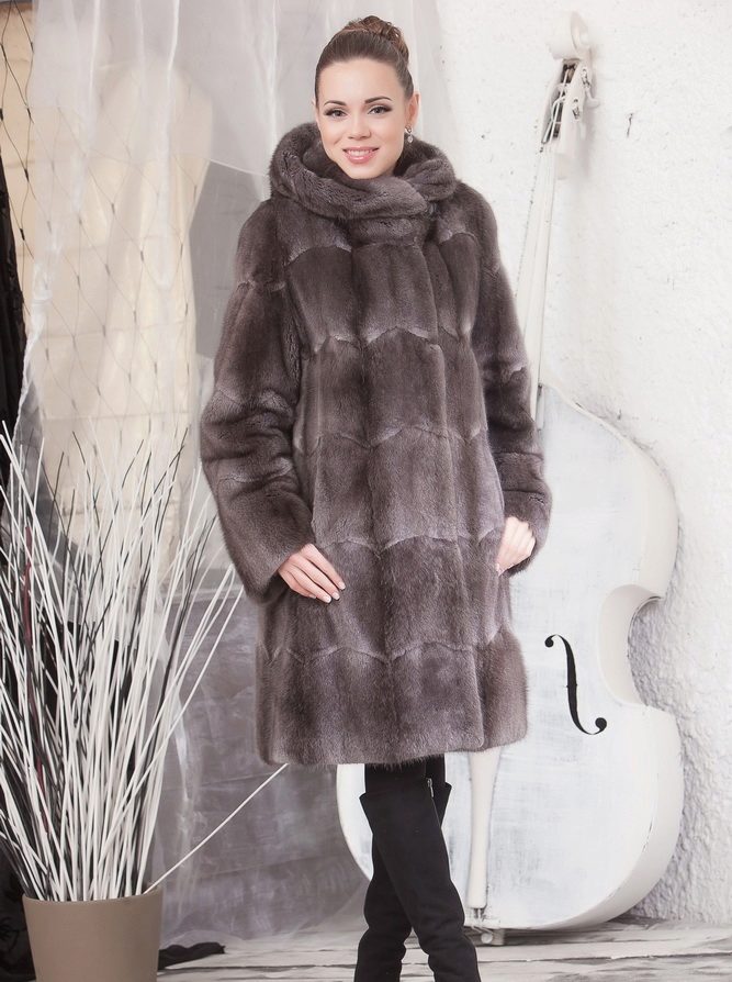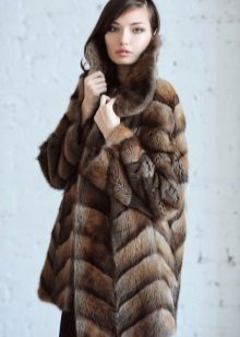 Classic models - a little longer than the knee, style "trapeze" or straight cut are the leaders in sales. Such coats can be with a hood or a beautiful collar, have a belt, overhead or hidden pockets. Given that the muskrat is a great companion for other furs, you can often find models where the hood, cuffs or hem are trimmed with mink, polar fox or silver fox.