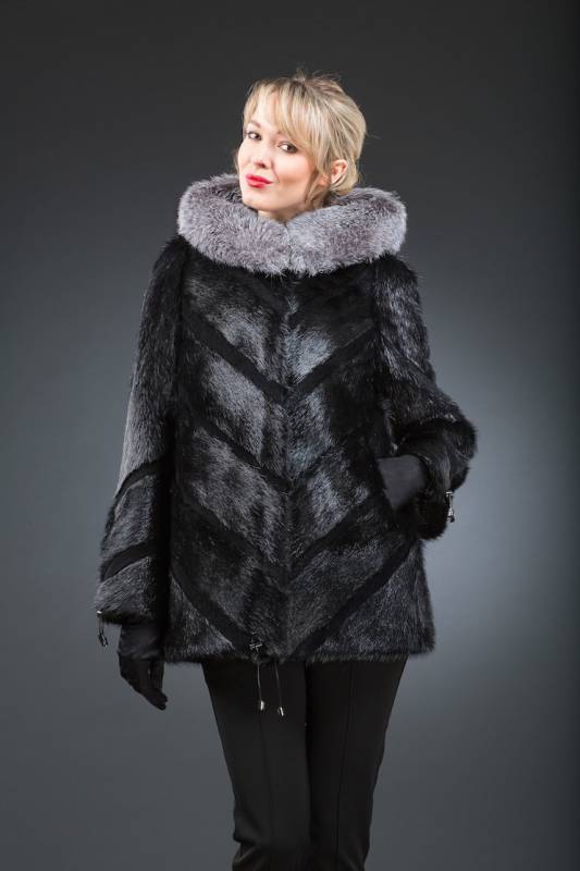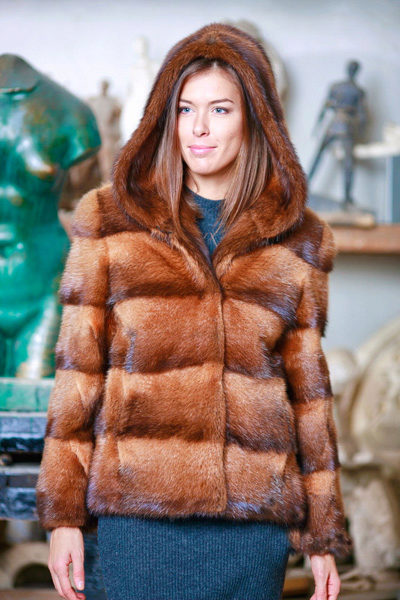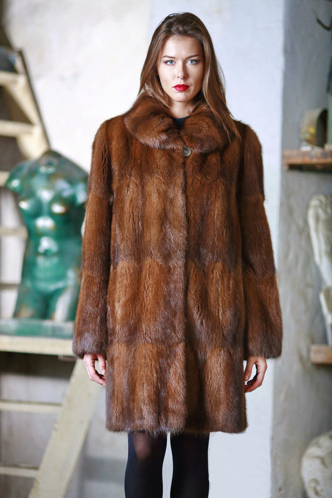 Fur coats of sheared or plucked muskrats are also incredibly good! There are models, the fur which does not reach and a centimeter in length. Often, only the “body” of the fur coat is clipped, leaving the sleeves and collar with a slightly longer fur. This combination looks very stylish and not easy to guess that you have a muskrat fur coat in front of you. In the same way, seam coats are sewn — the pile can be either quite long or short, almost plush.