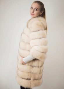 In the fashion industry, more and more fur coats are made of arctic fox. The product consists of fur plates. They may have different widths. For example, some ladies choose wide lanes, while others like narrow ones. In this case, we must not forget that any stripes fill the female figure, so that full women should pay more attention to the whole coat.